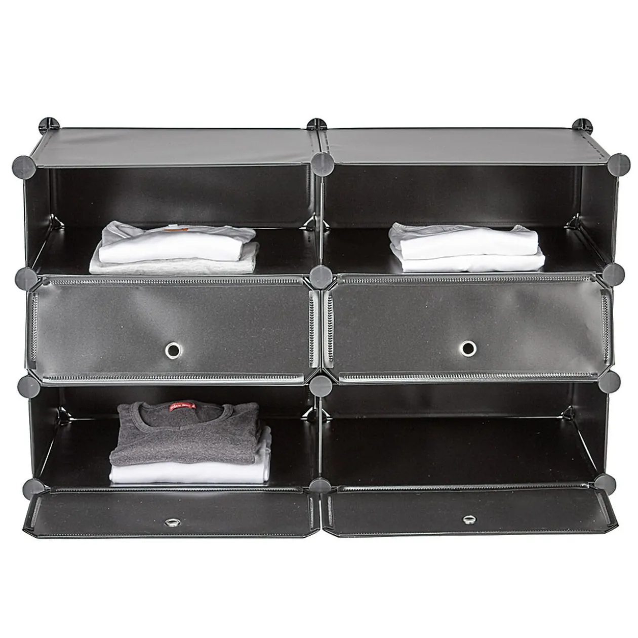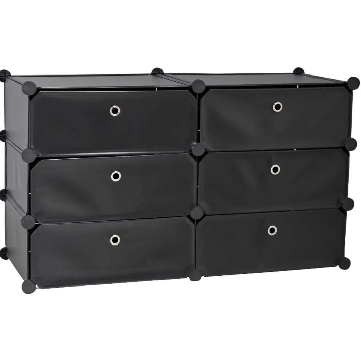 Organisez votre pièce avec ce large meuble de rangement de couleur noire comportant 6 tiroirs.
