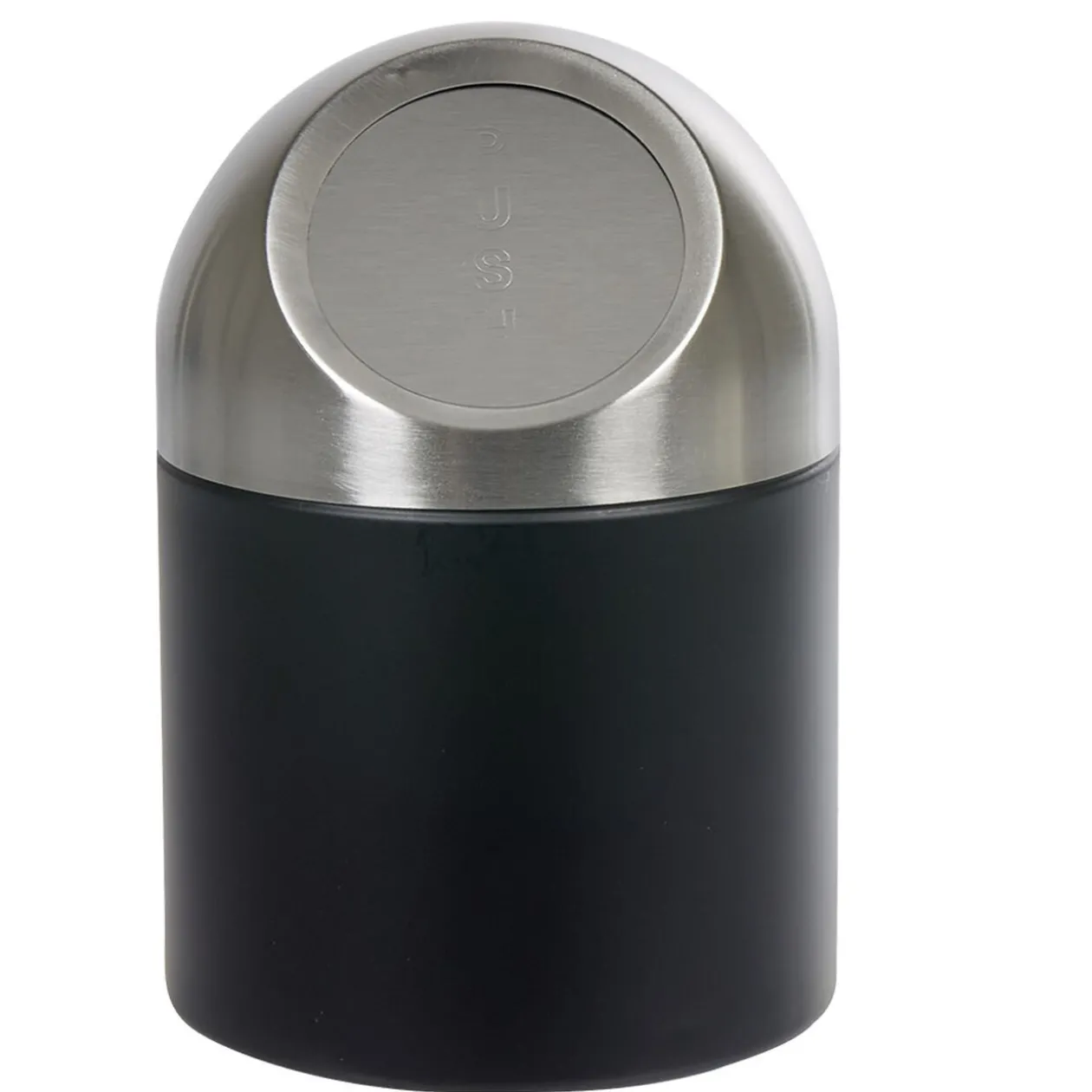 Cette mini poubelle de salle de bain en métal design noir et gris avec ouverture push sera parfaite à côté du lavabo pour jeter directement vos déchets comme les cotons-tiges, disques démaquillants usagés…