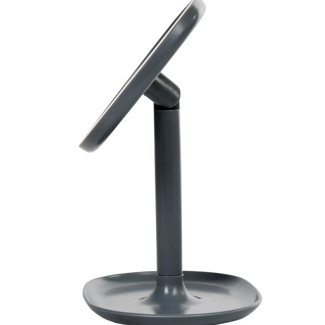 Miroir POP inclinable de couleur grise sur pieds pouvant faire office de repose bijoux ou accessoires.