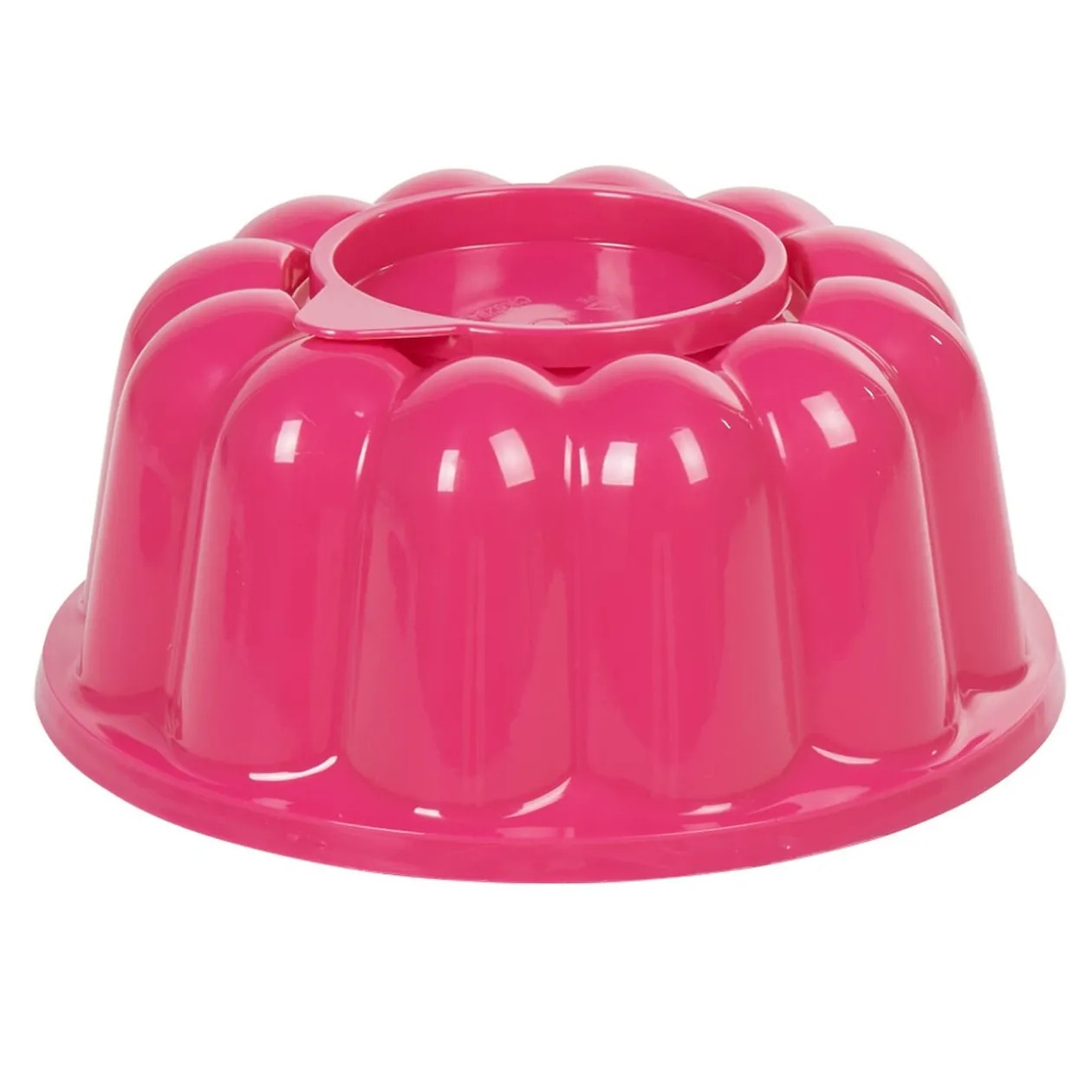 Moule à charlotte en plastique et silicone rose de 21 cm de diamètre.
