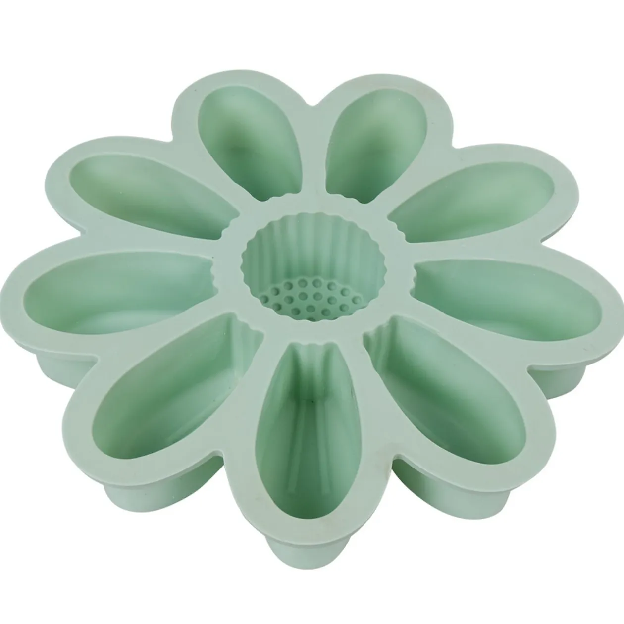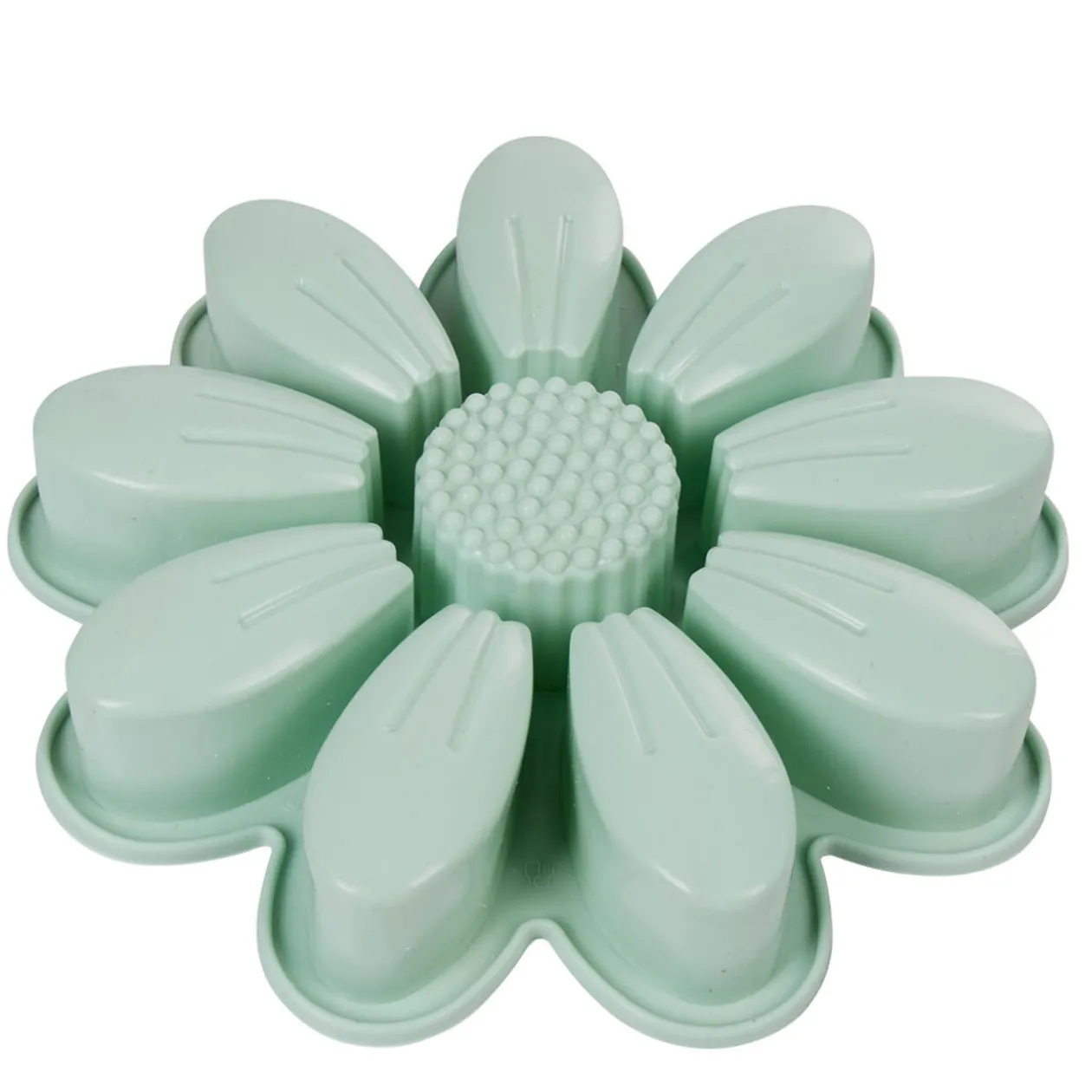 Moule siliconé violet en forme de fleur. Idéal pour créer de jolis gâteaux avec originalité !