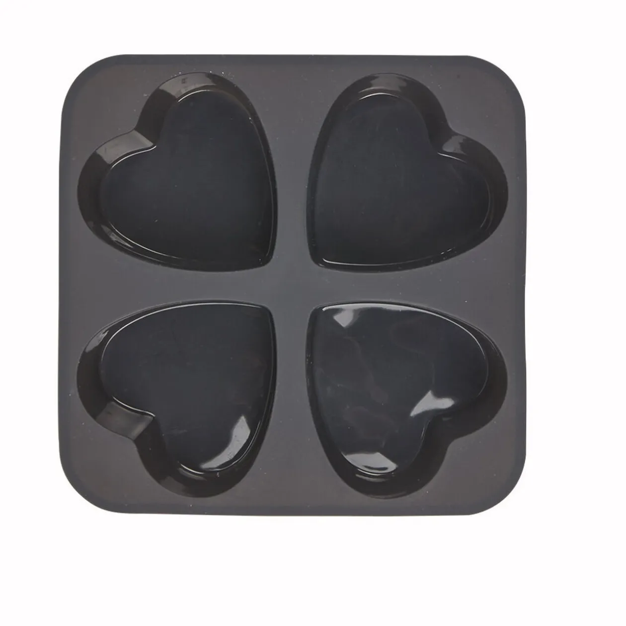 Moule en silicone 4 coeurs dim. 6,5x7xh.3 cm, planche dim. 16×16 cm. Cuisson four et Micro-ondes, passe au lave-vaisselle, + 220°C, – 20°C.