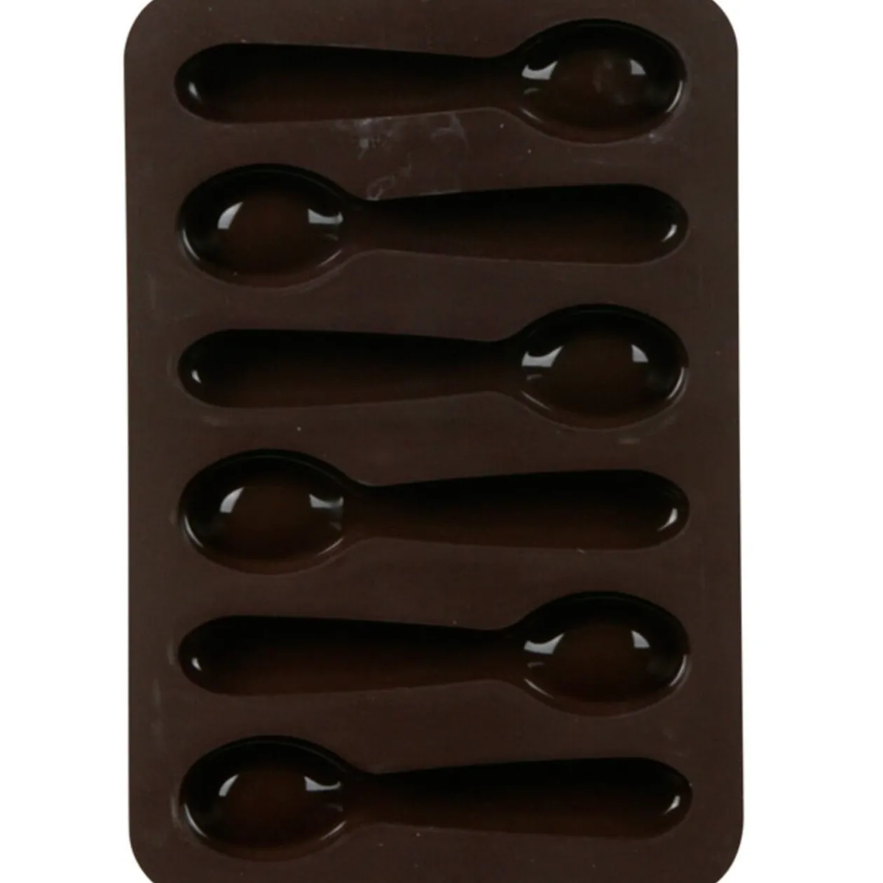 6 chocolats en forme de cuillères, dim. 2,5×10 cm chacun, silicone. Cuisson four et Micro-ondes, passe au lave-vaisselle. Diff. coloris, disponibilité selon arrivage.