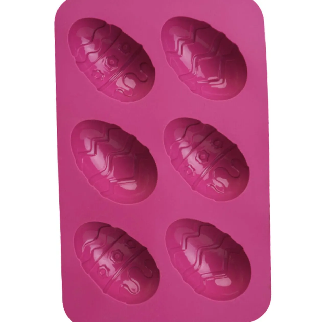 Moule silicone de 6 oeufs L. 5 cm, planche dim. 17,5x11x1,5 cm. Diff. coloris, disponibilité selon arrivage.