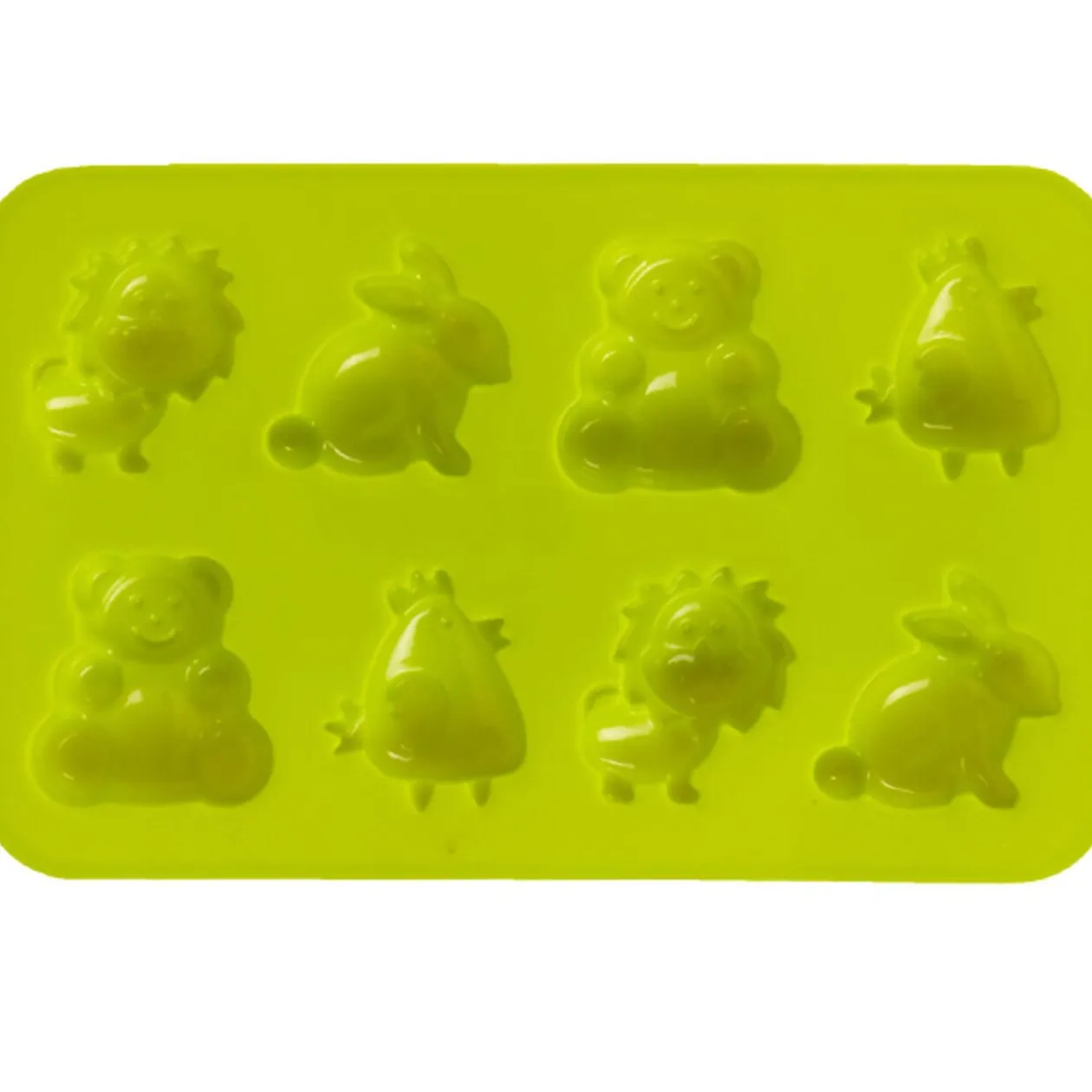 Moule en silicone de 8 animaux, planche dim. 17,5×11 cm, animaux dim. 4x3x1 cm environ. Diff. coloris, disponibilité selon arrivage.