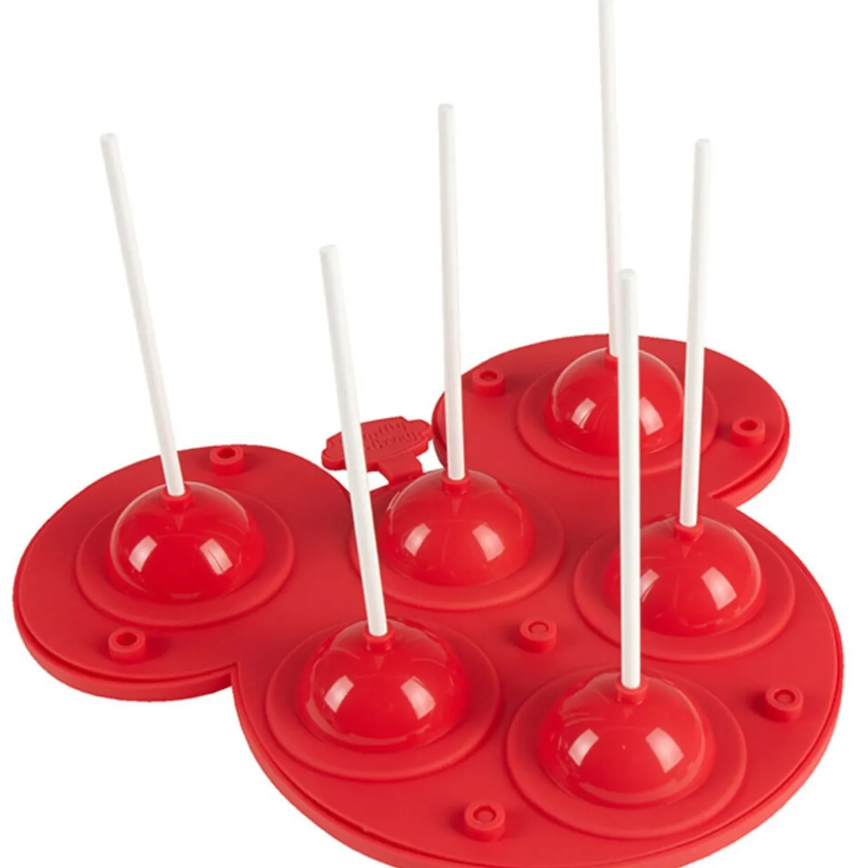 Moule en silicone Mickey pour réaliser 6 cake pops, dim. 21×19 cm. 12 batonnets L. 15 cm inclus.