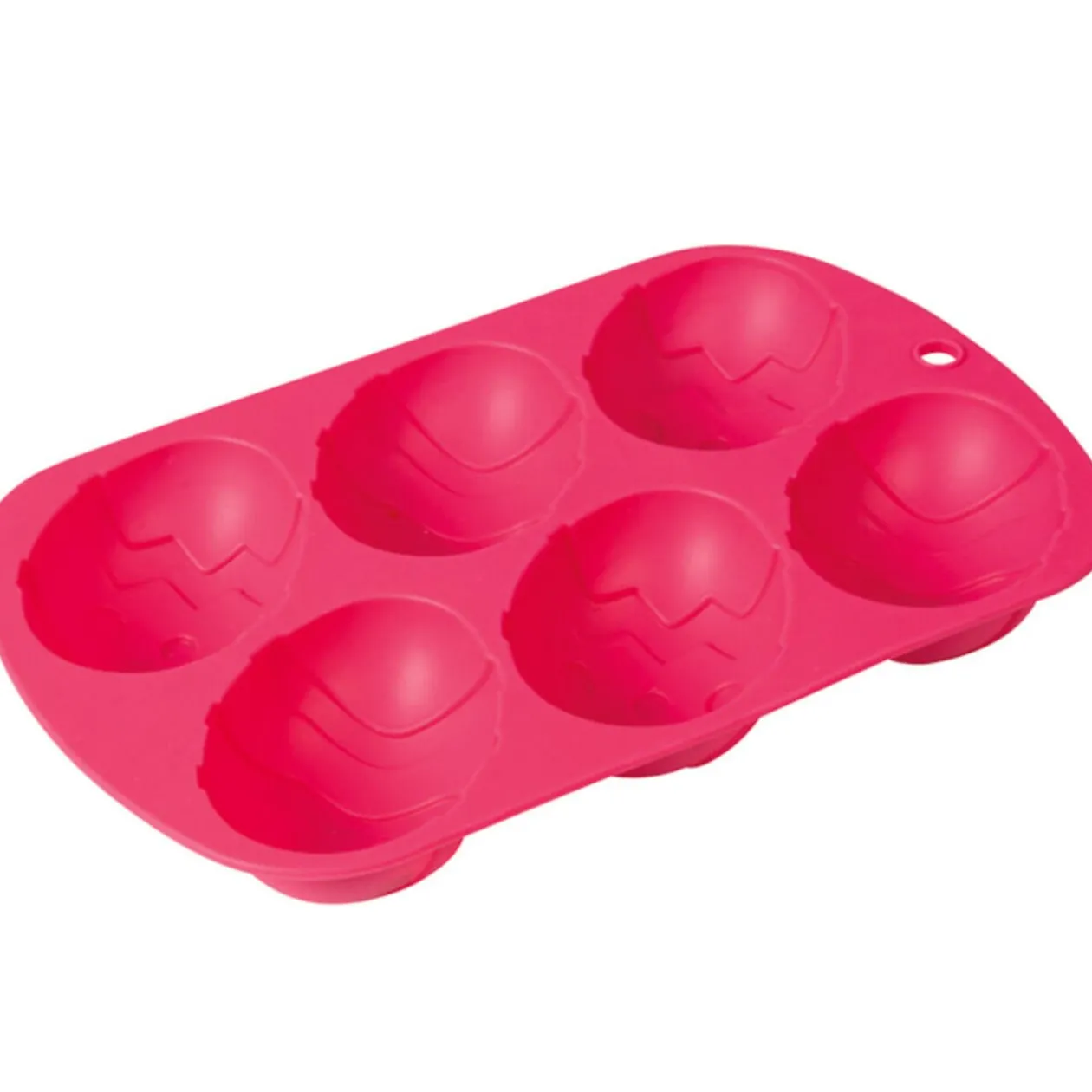 Moule 6 oeufs, dim. 26,5×17 cm, silicone. Diff. coloris, disponibilité selon arrivage.