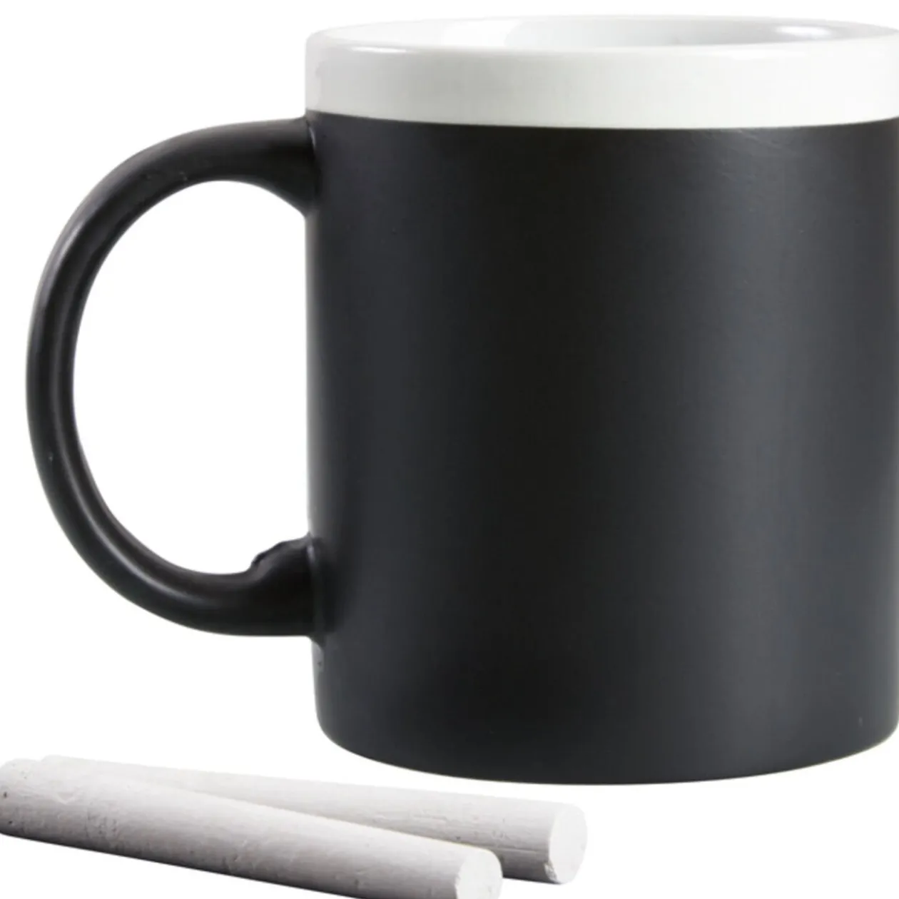 Mug ardoise dim. Ø8xh.9,5 cm, grès, intérieur blanc et extérieur noir. 2 craies incluses.