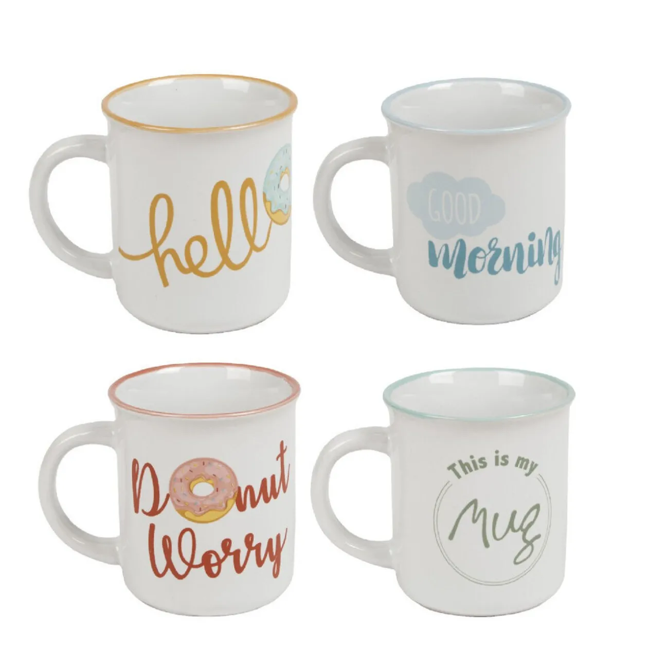Lot de 4 mugs blancs avec inscriptions colorées funny.