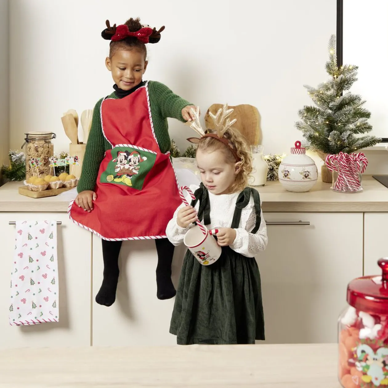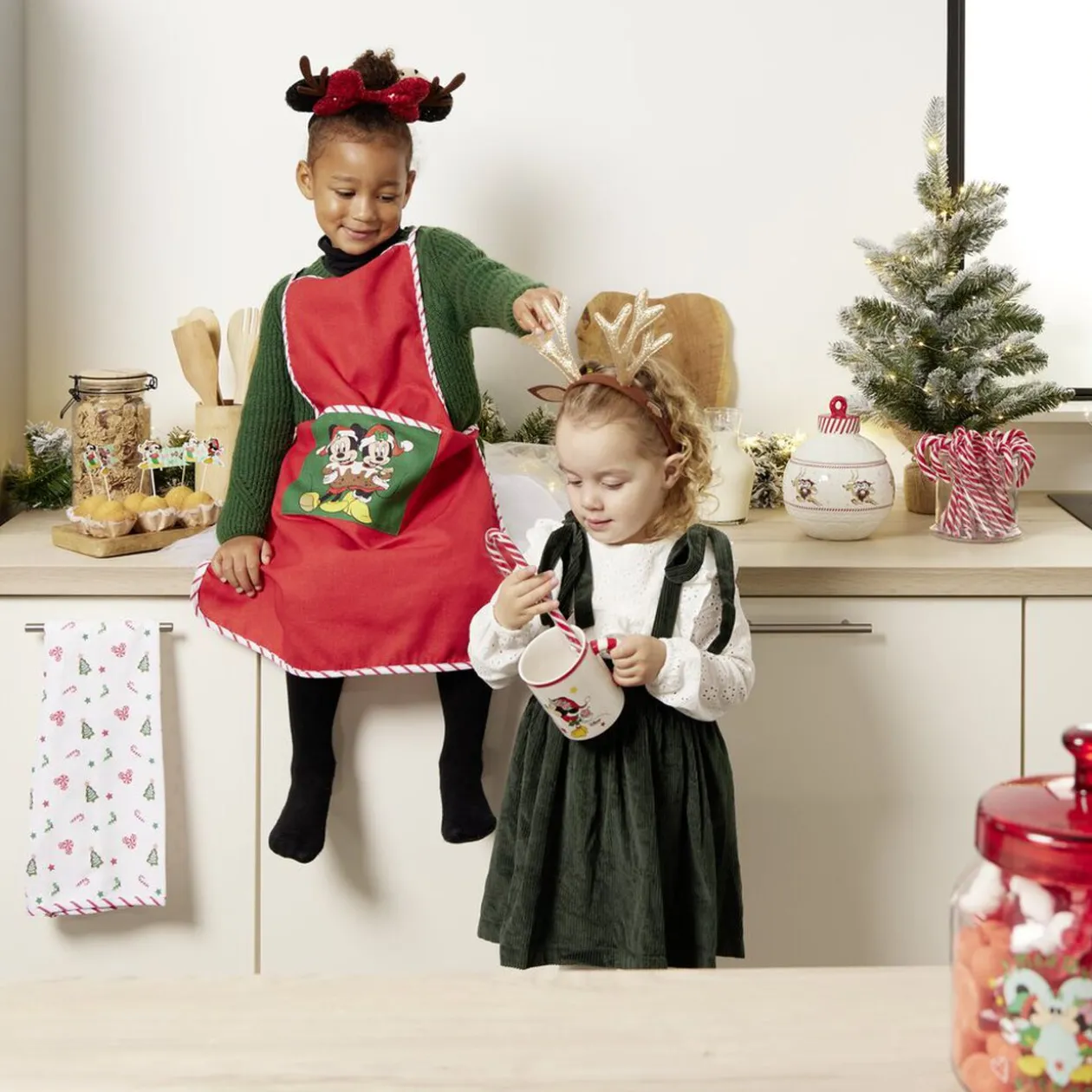 Craquez pour ce mug représentant Mickey en train de porter une pile de cadeaux de Noël auprès de sa chère Minnie, visible sur l’autre face.
