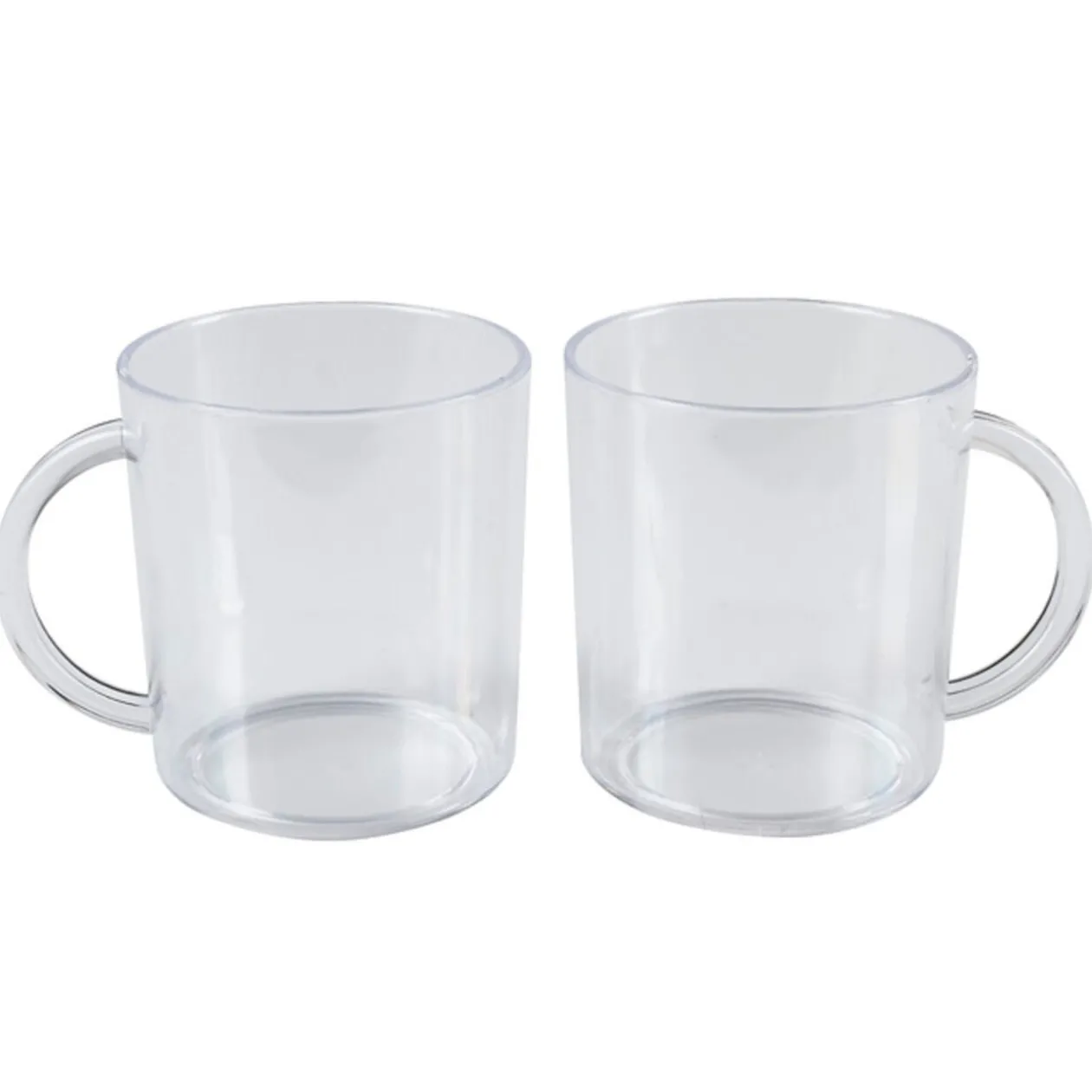 2 mugs transparents en plastique, dim. Ø8xh.9,5 cm.