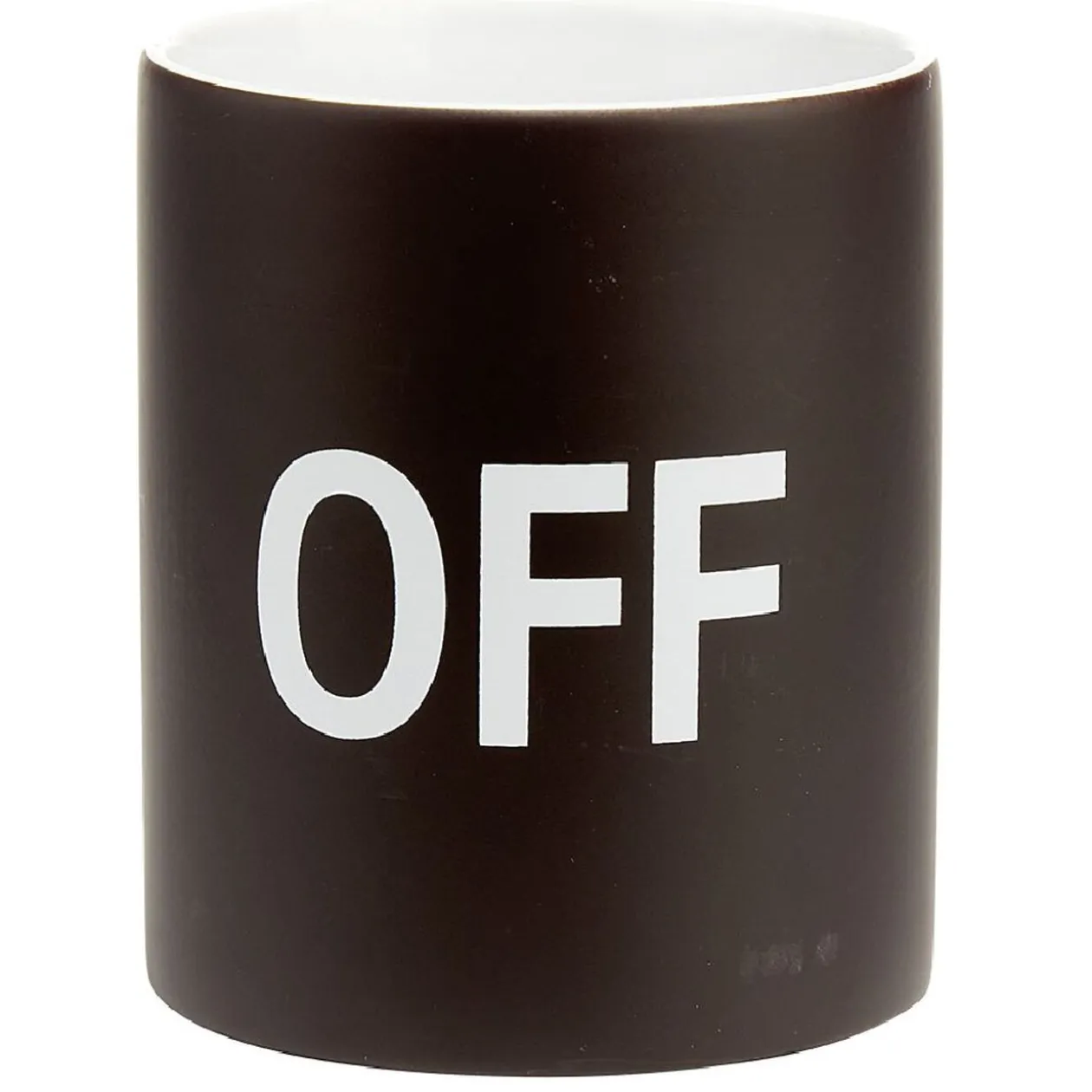 Lorsque le mug est froid, il devient noir avec l’inscription OFF.