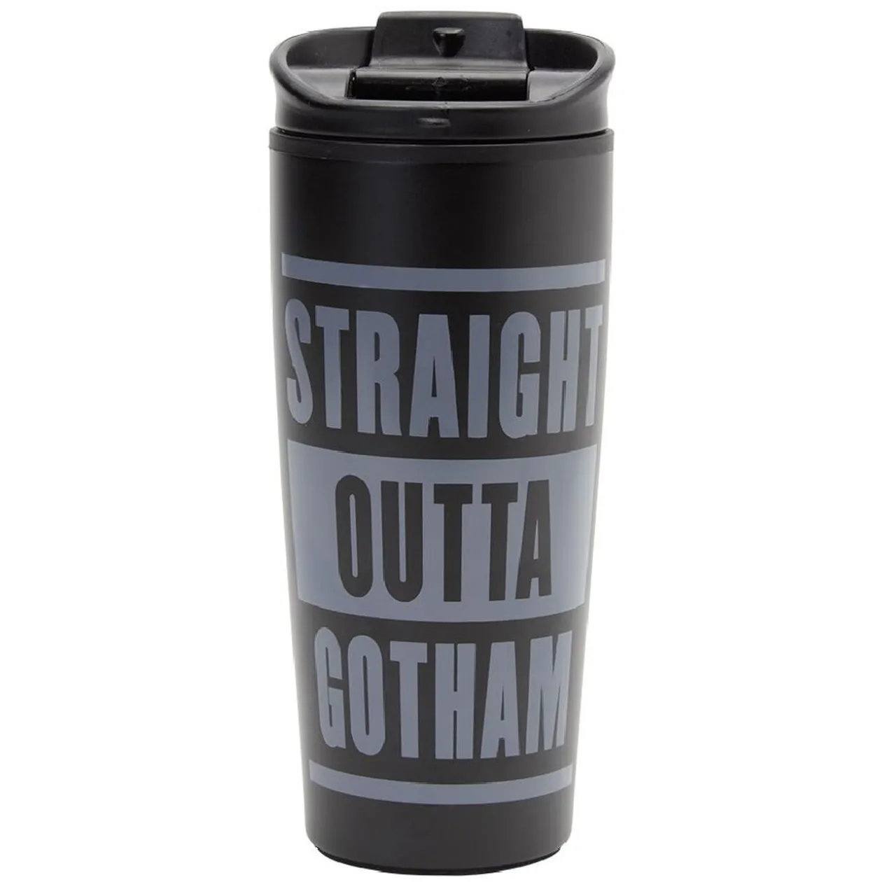 Mug de voyage en acier motif Batman, idéal pour transporter vos liquides chauds en toute sécurité et pour longtemps.