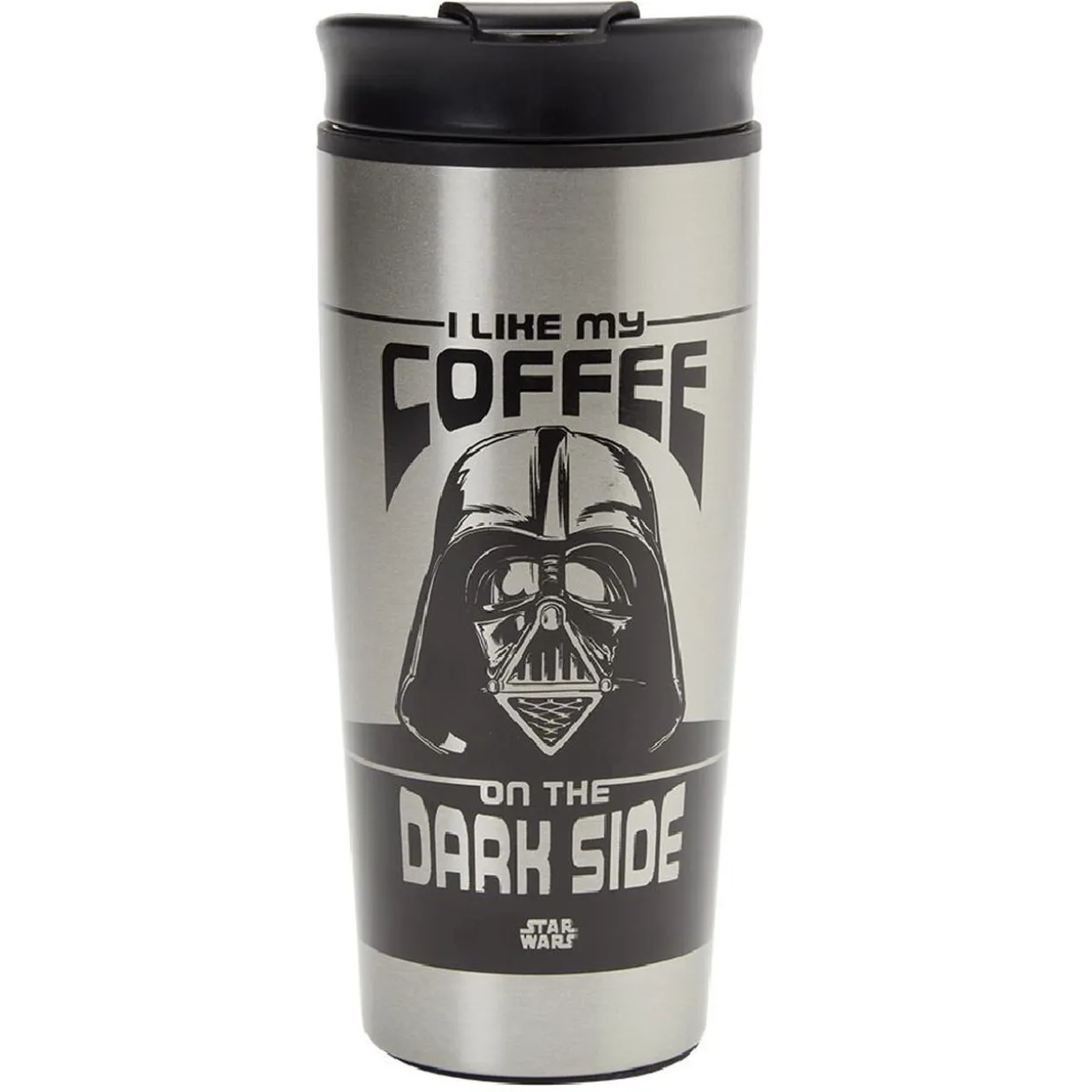 Mug de voyage en acier motif Dark Vador, idéal pour transporter vos liquides chauds en toute sécurité et pour longtemps.