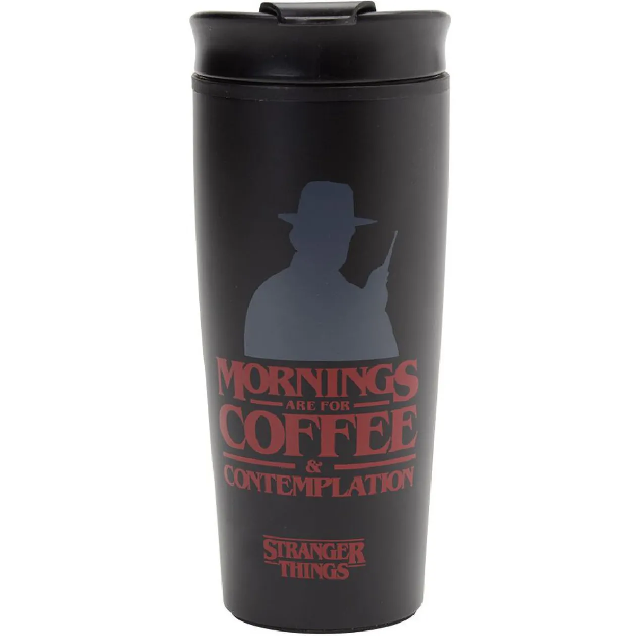 Mug de voyage en acier motif Stranger Things, idéal pour transporter vos liquides chauds en toute sécurité et pour longtemps.