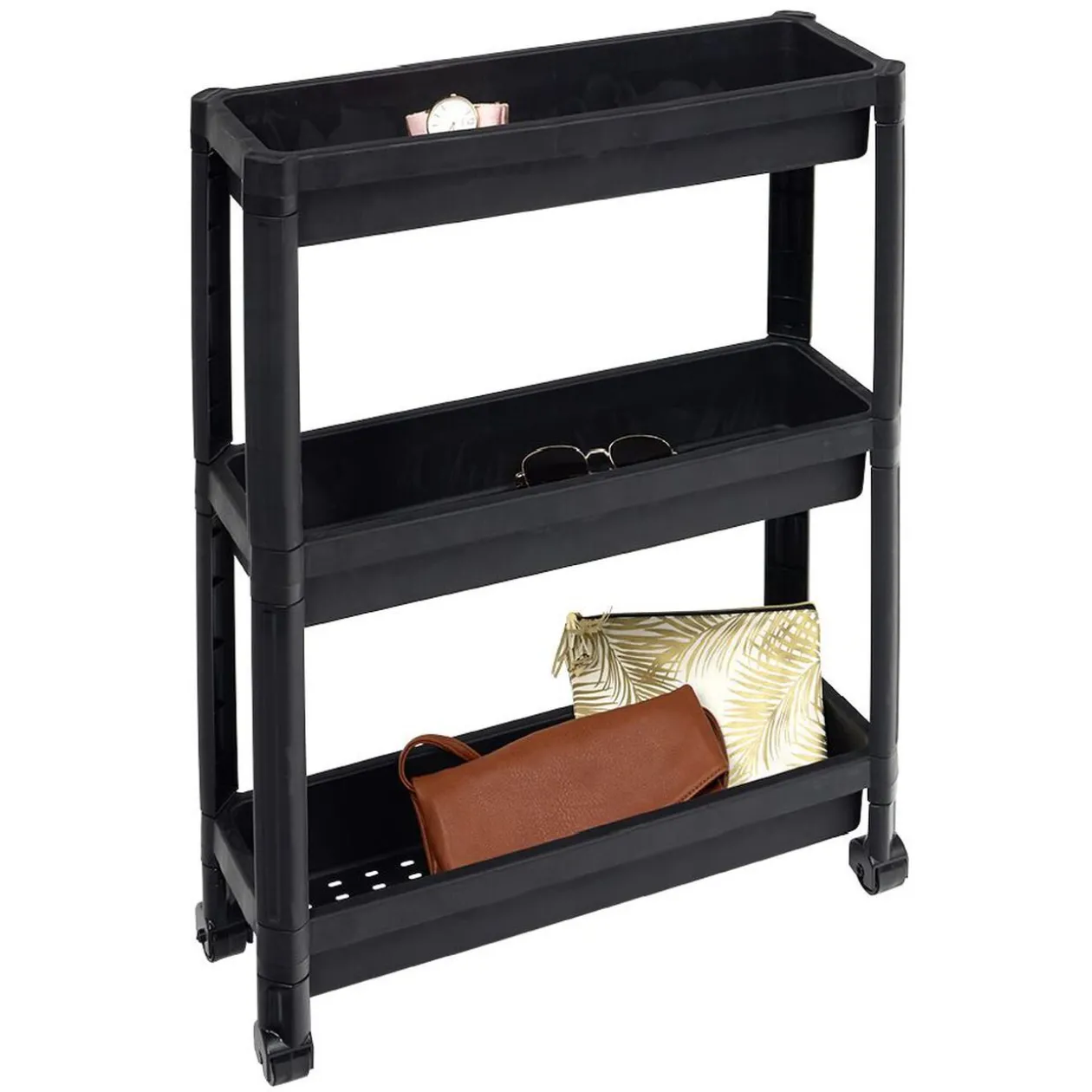 Cet organiseur à 3 niveaux en polypropylène noir est idéal en petit meuble d’appoint pour les affaires qui ne passent pas dans vos tiroirs.