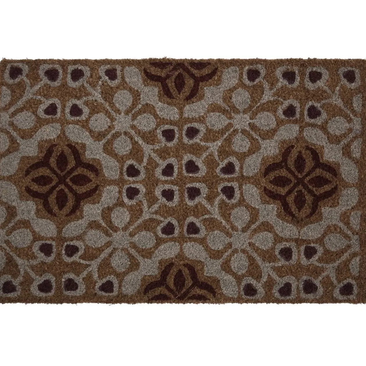 Paillasson motif fleurs de couleur marron, blanc, rouge et violet.