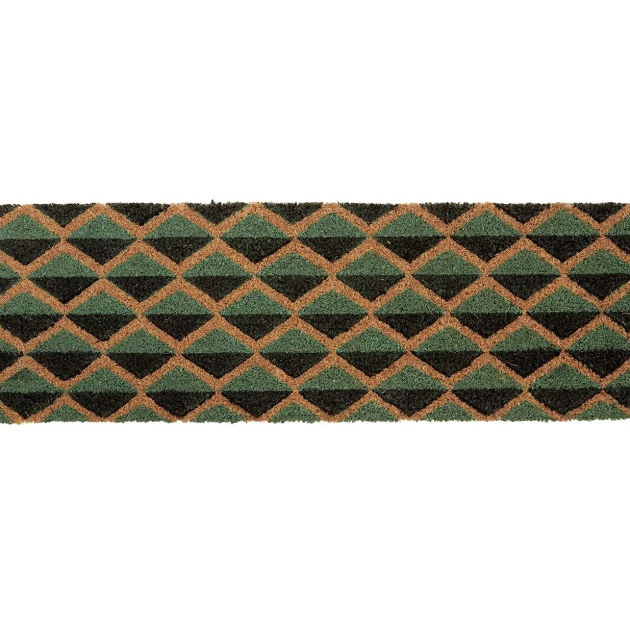 Paillasson en fibre de coco à motif losanges noir et gris.