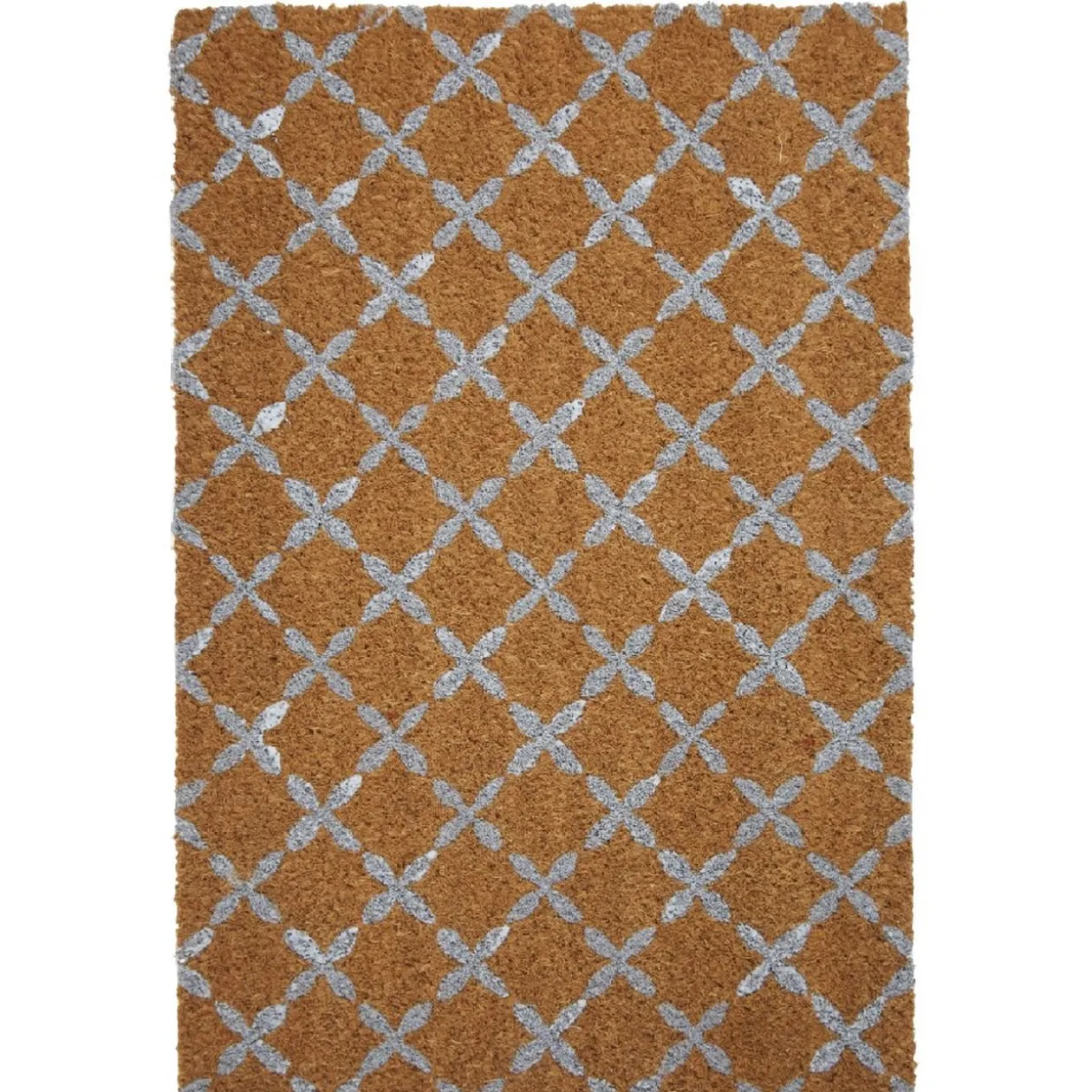 Rentrez chez vous les pieds secs grâce à ce paillasson en fibres de coco naturelles marron au design quadrillé gris.
