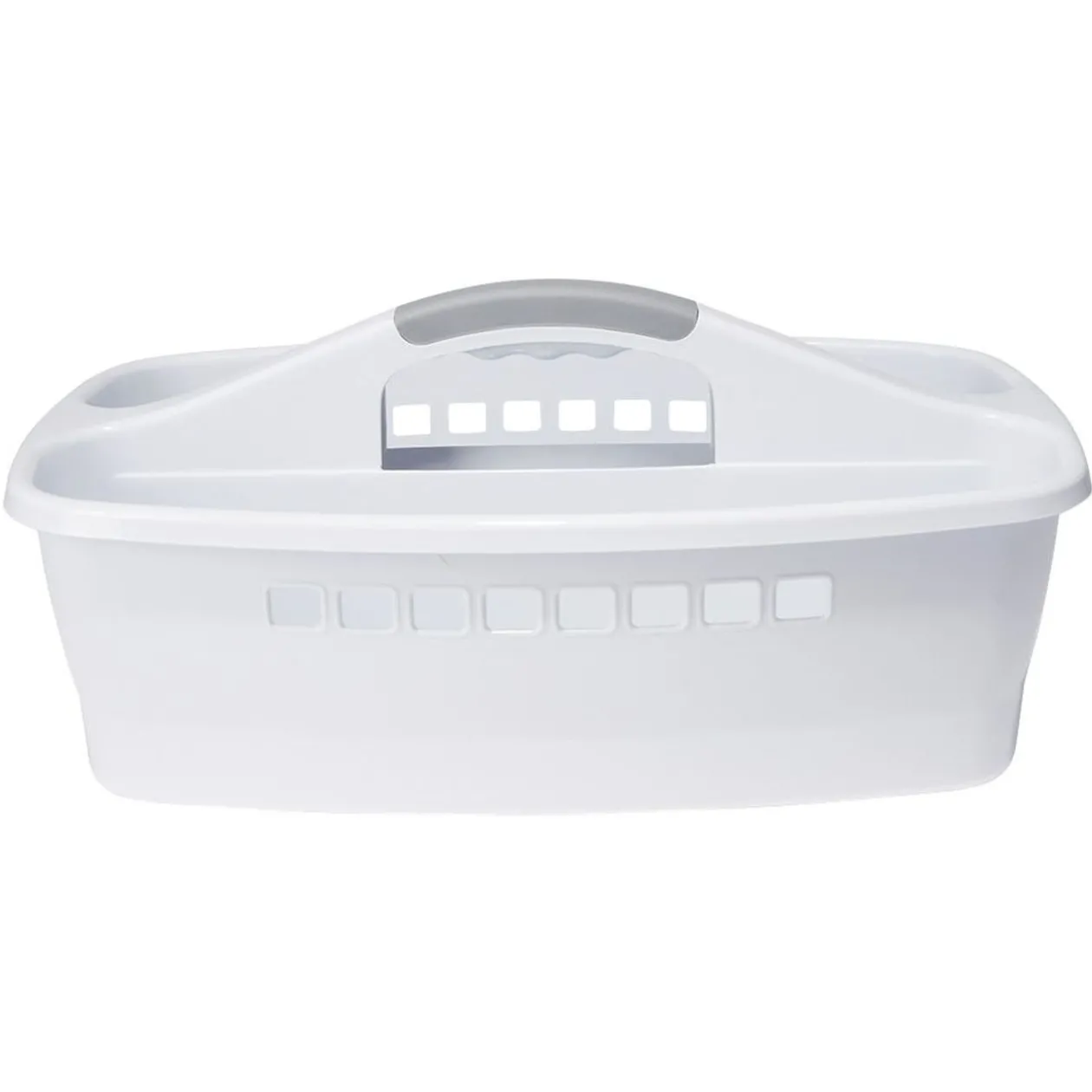 Panier de rangement pour produits ménagers à 2 compartiments avec poignée de transport.