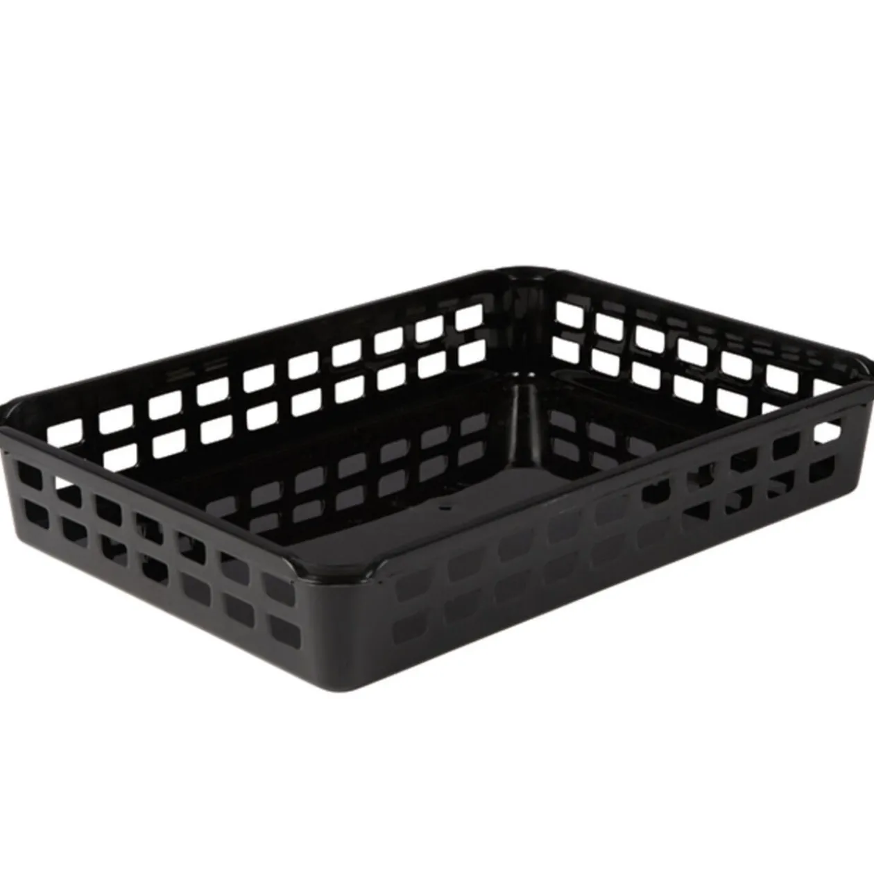 Panier de rangement noir, dim. 35×24,5×6 cm, plastique.