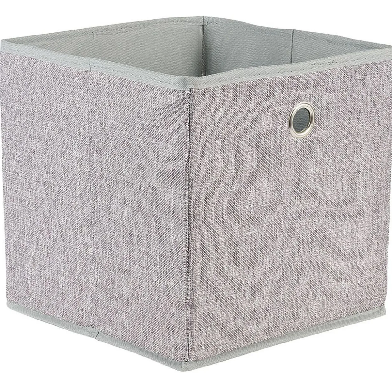 Panier de rangement pliable gris pour organiser des affaires sur une étagère ou pour ranger les jouets dans la chambre de votre enfant.