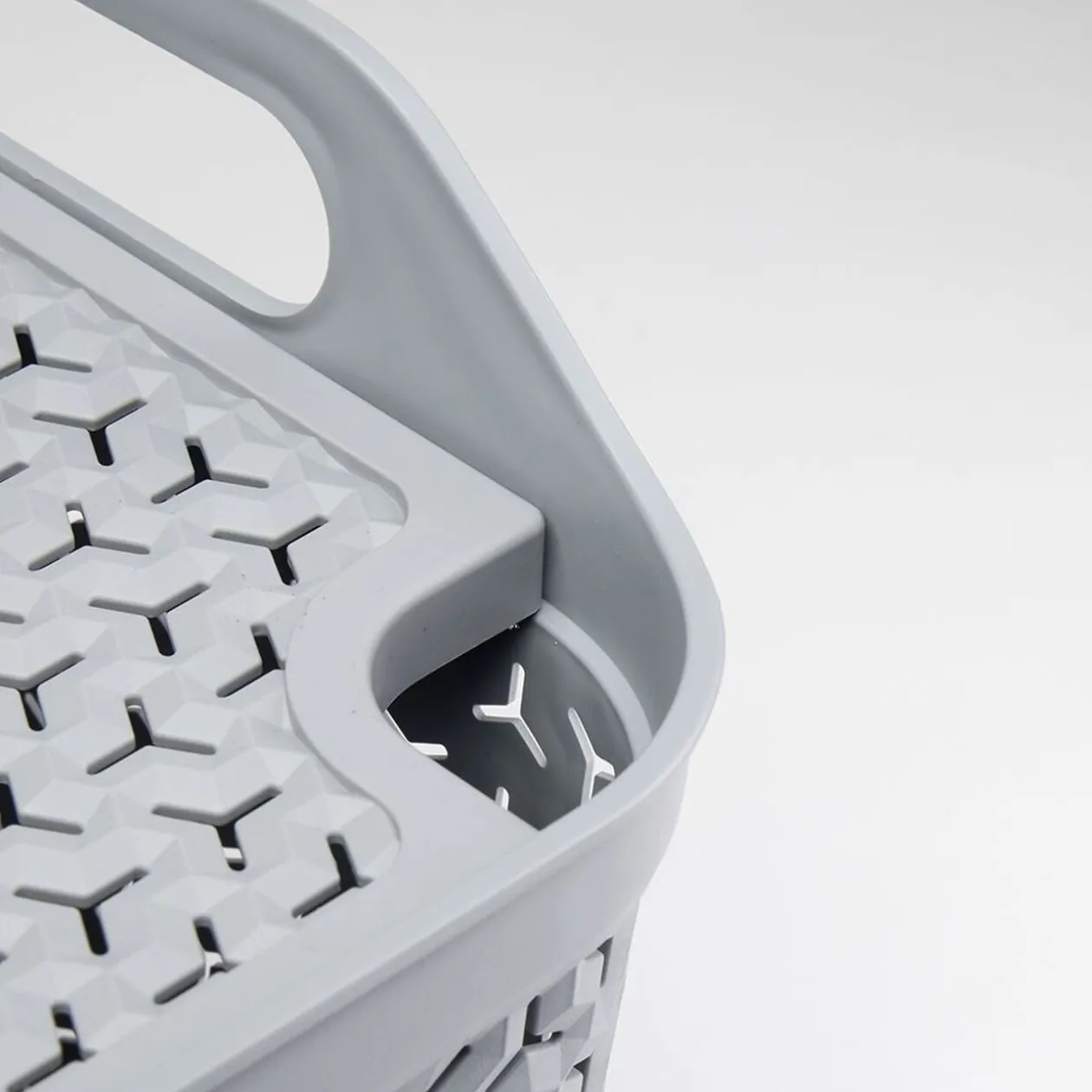 Pour ranger de plus petits objets, retrouvez la panière grise assortie en version 8L, référence 580292, selon disponibilité en magasin.