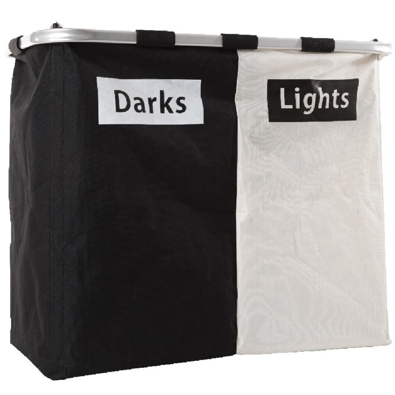 Panière à linge 2 compartiments, facilite le tri du linge. Dim. 62 x 52 x 32 cm, polyester