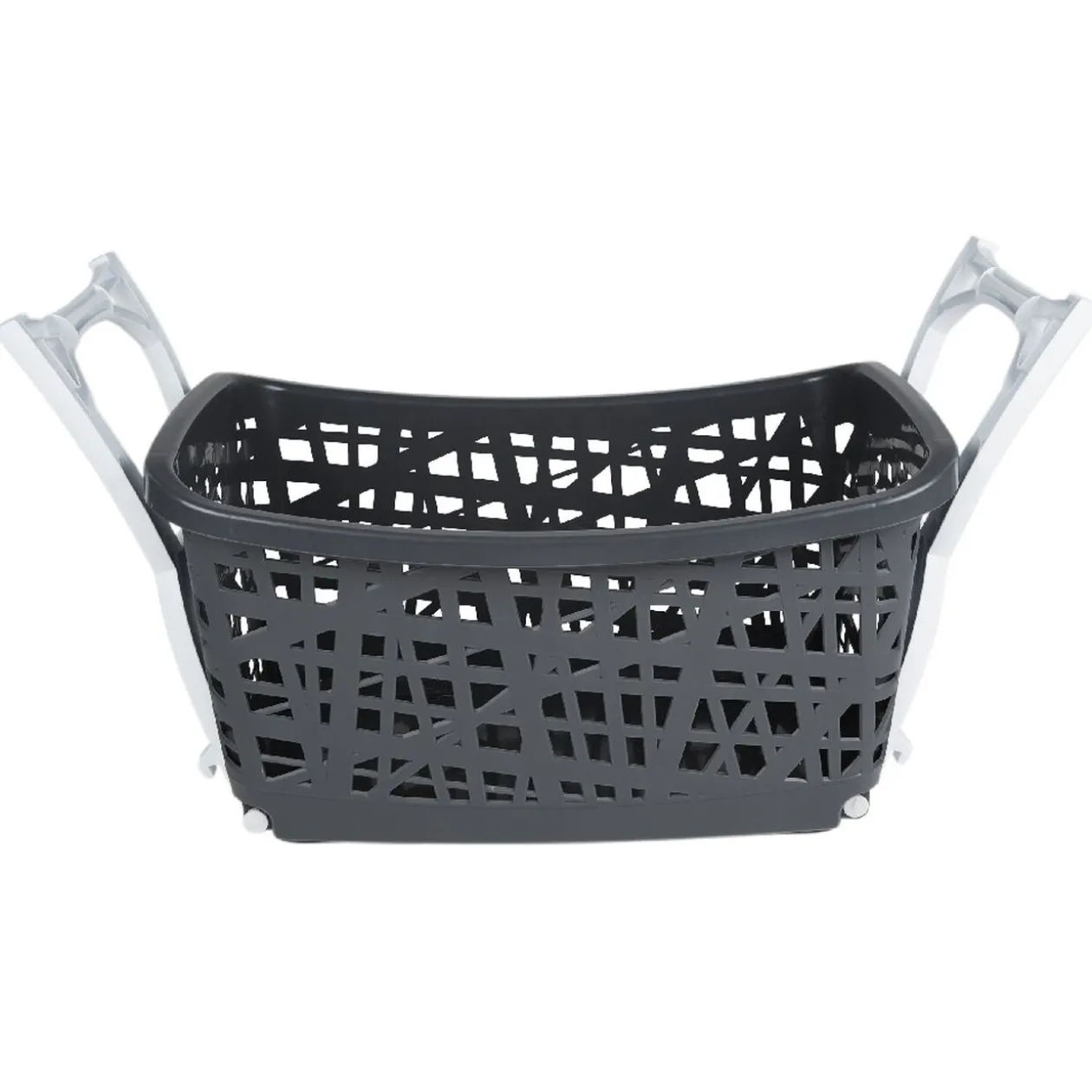 Avec cette panière à linge sur pieds, plus besoin de vous baisser. Posez le panier par terre avec les pieds dépliés et étendez votre linge facilement. Rangez-le facilement grâce à ses pieds rétractables et déplacez-le facilement grâce à ses roulettes.