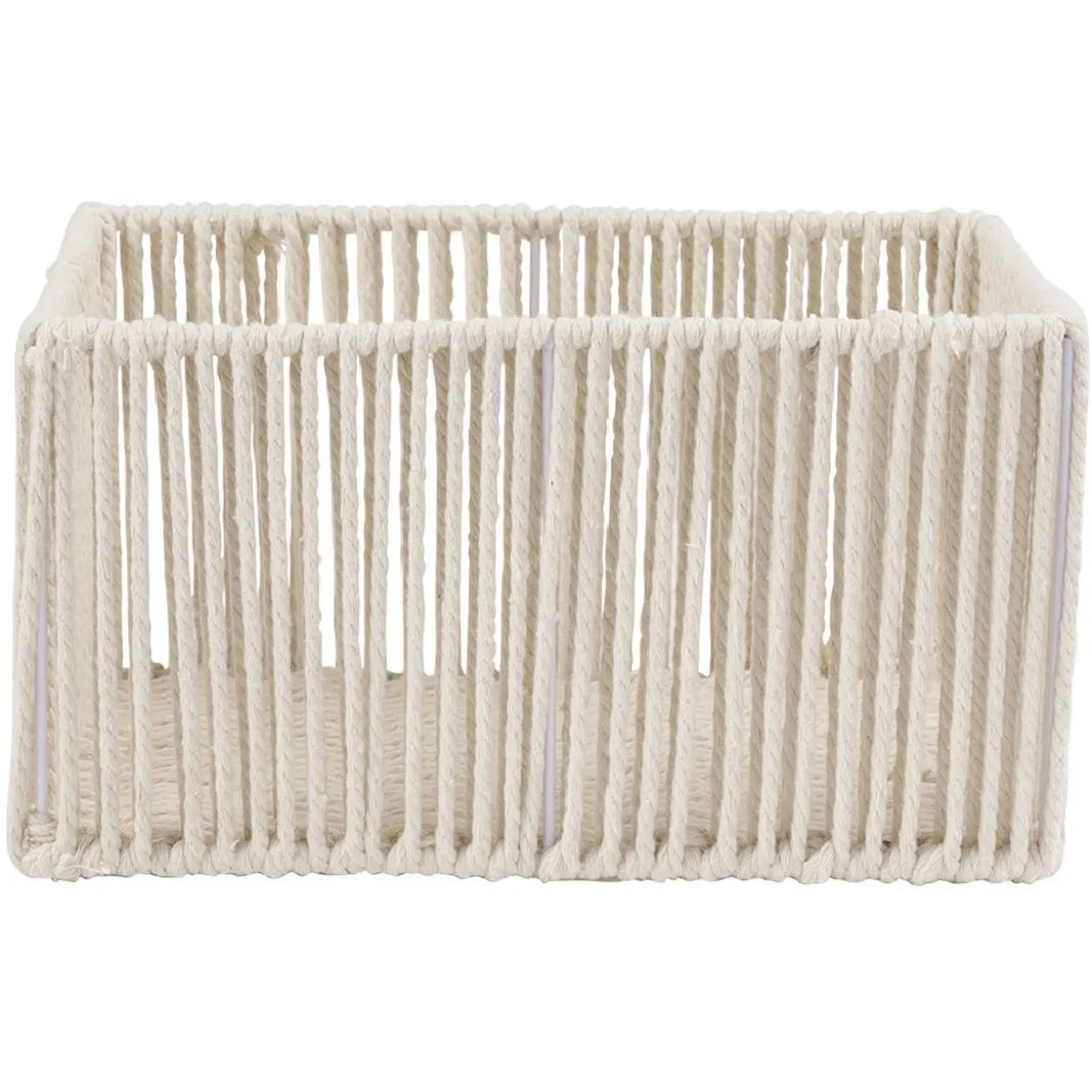 Cette panière ajourée en coton beige apportera une délicate touche déco en plus d’être pratique pour le rangement.