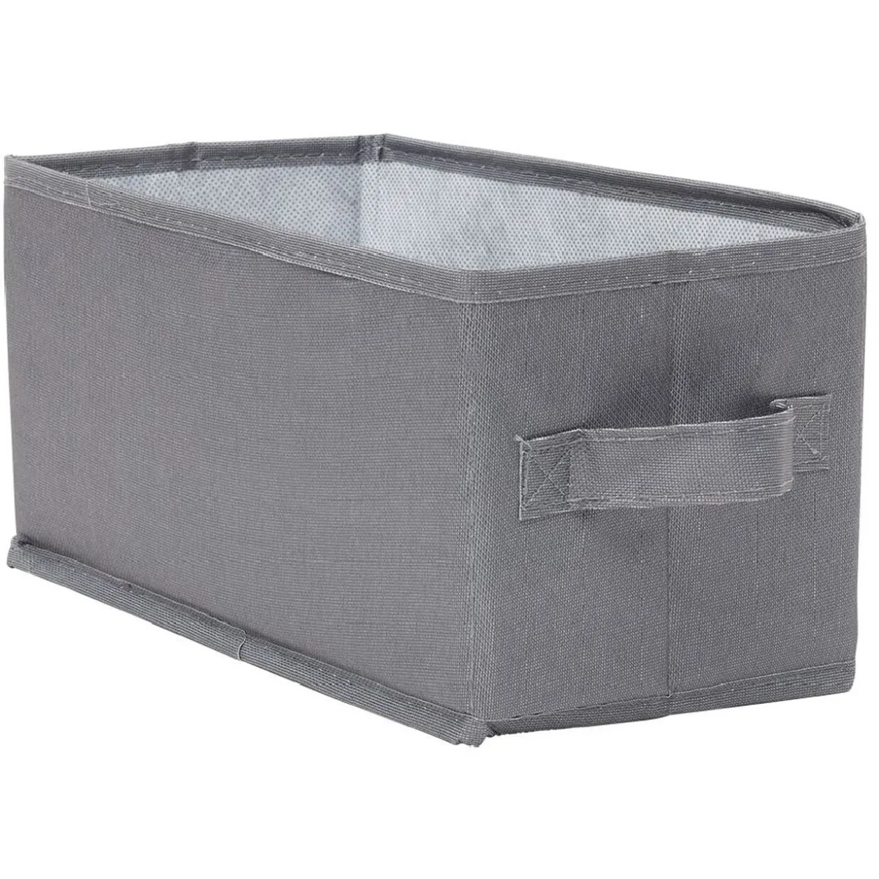 Panière de rangement en polyester uni gris, idéale pour ranger de petits objets, les sous-vêtements ou les accessoires de bébé.