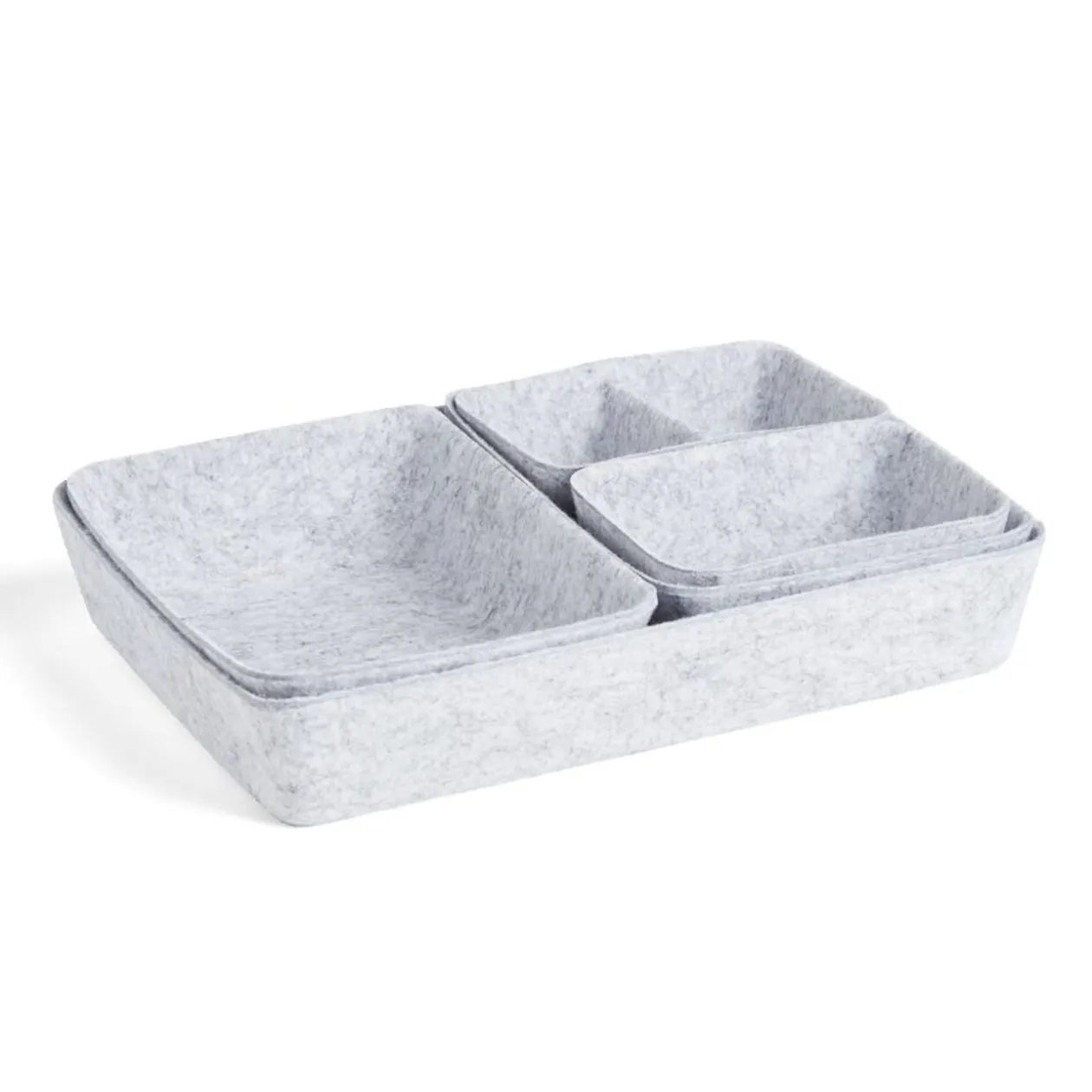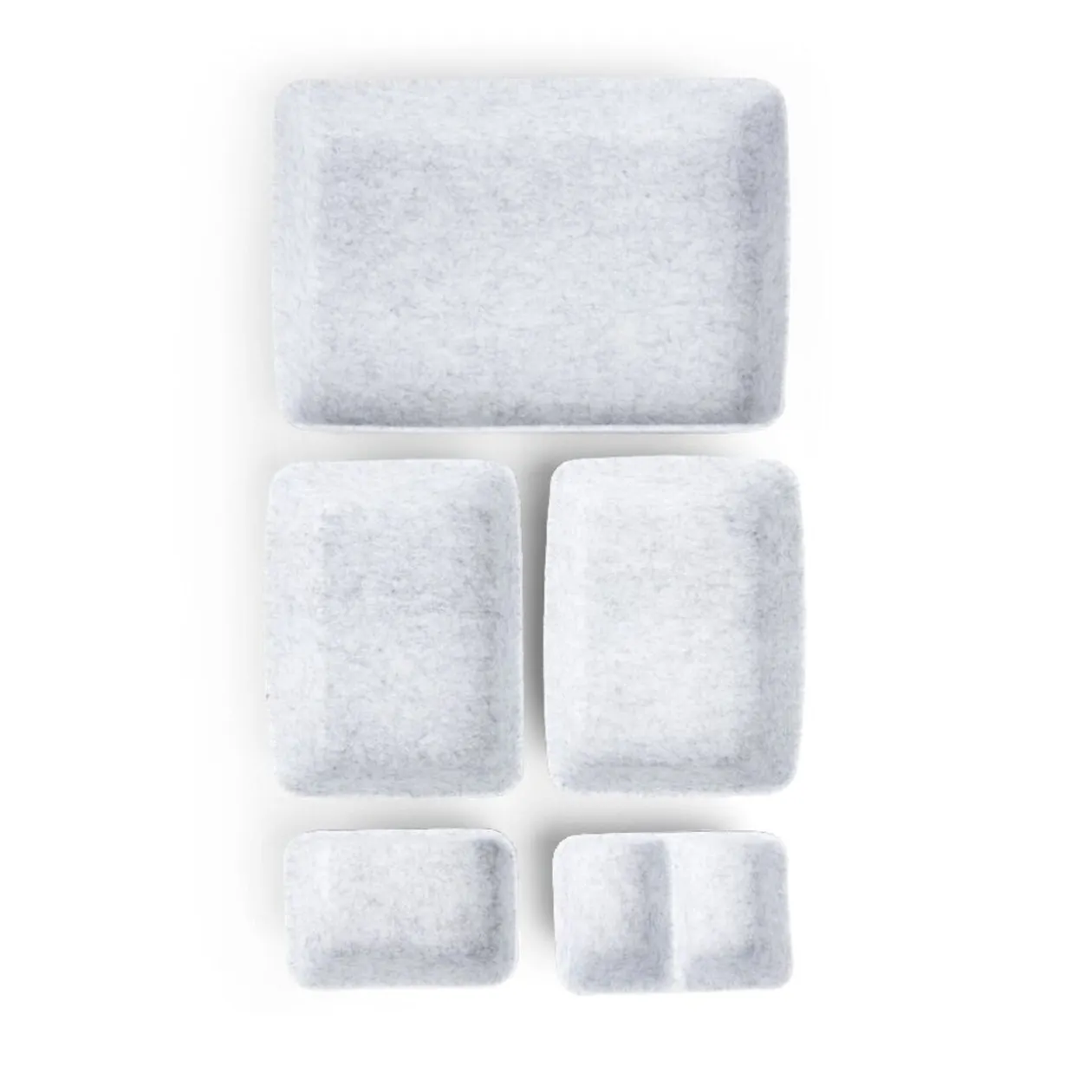 Conçue en feutrine douce, ces panières allient fonctionnalité et design moderne. La texture en feutrine offre une apparence chic et un toucher agréable pour accueillir divers objets et accessoires. Ce lot est composé de 5 tailles différentes.