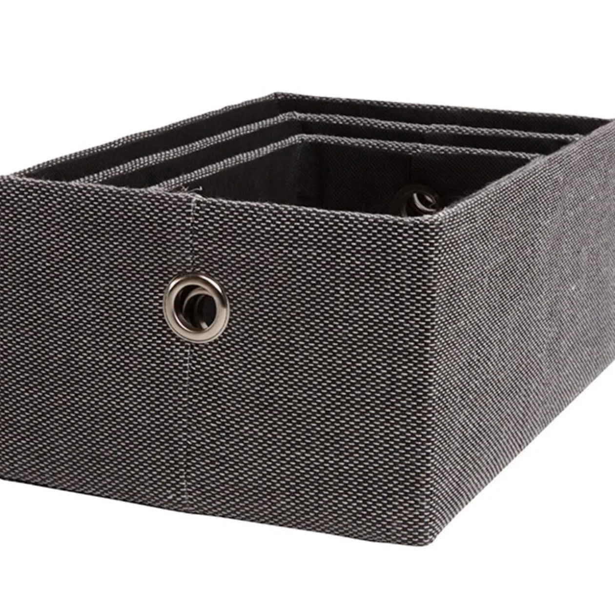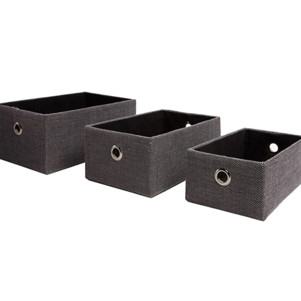Lot de 3 panières déco grises, empilables, pratiques et peu encombrantes.