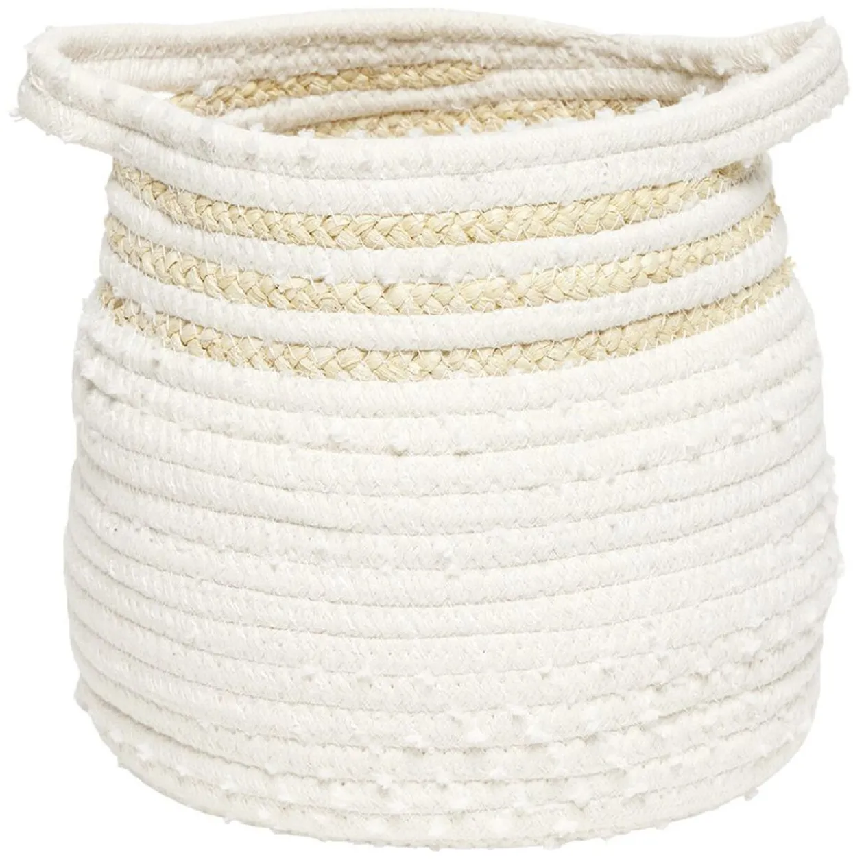 Pour une organisation supplémentaire, retrouvez la panière en jute et coton blanc grand format assortie, référence 575961, ainsi que la version moyen format également assortie, référence 575962,selon disponibilité en stock magasin.