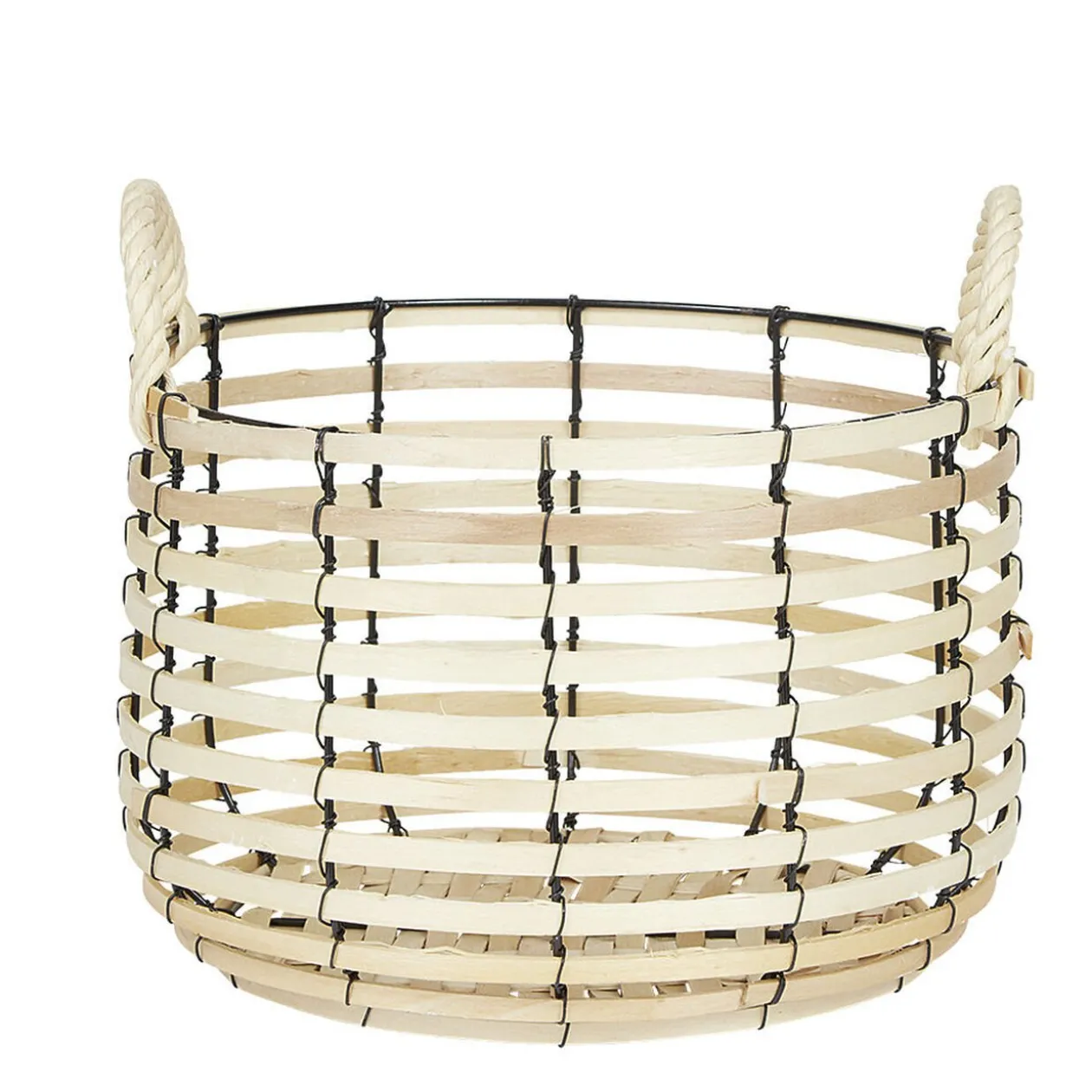 Lot de 2 panières composé+C21:C24es de bois de peuplier et de fer.