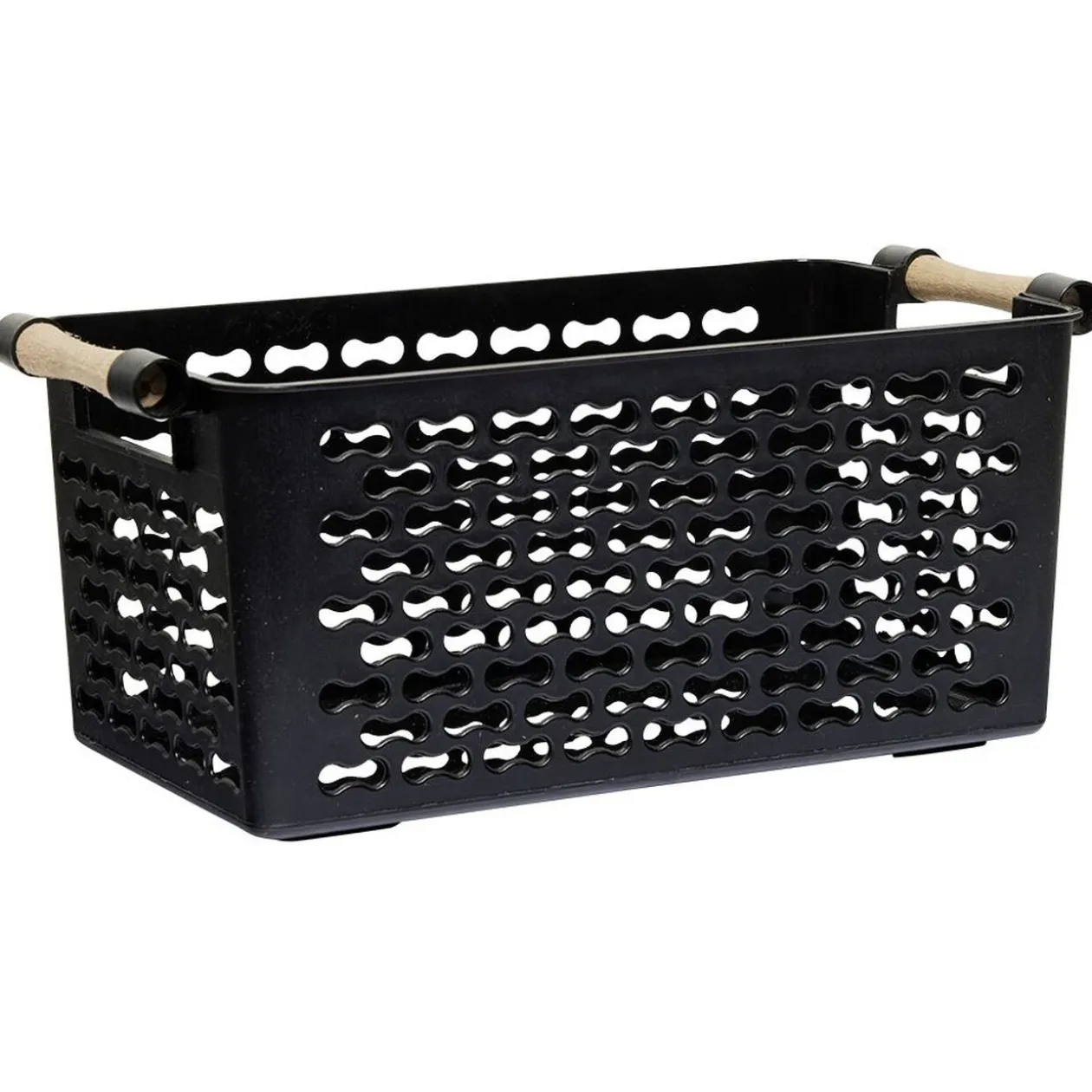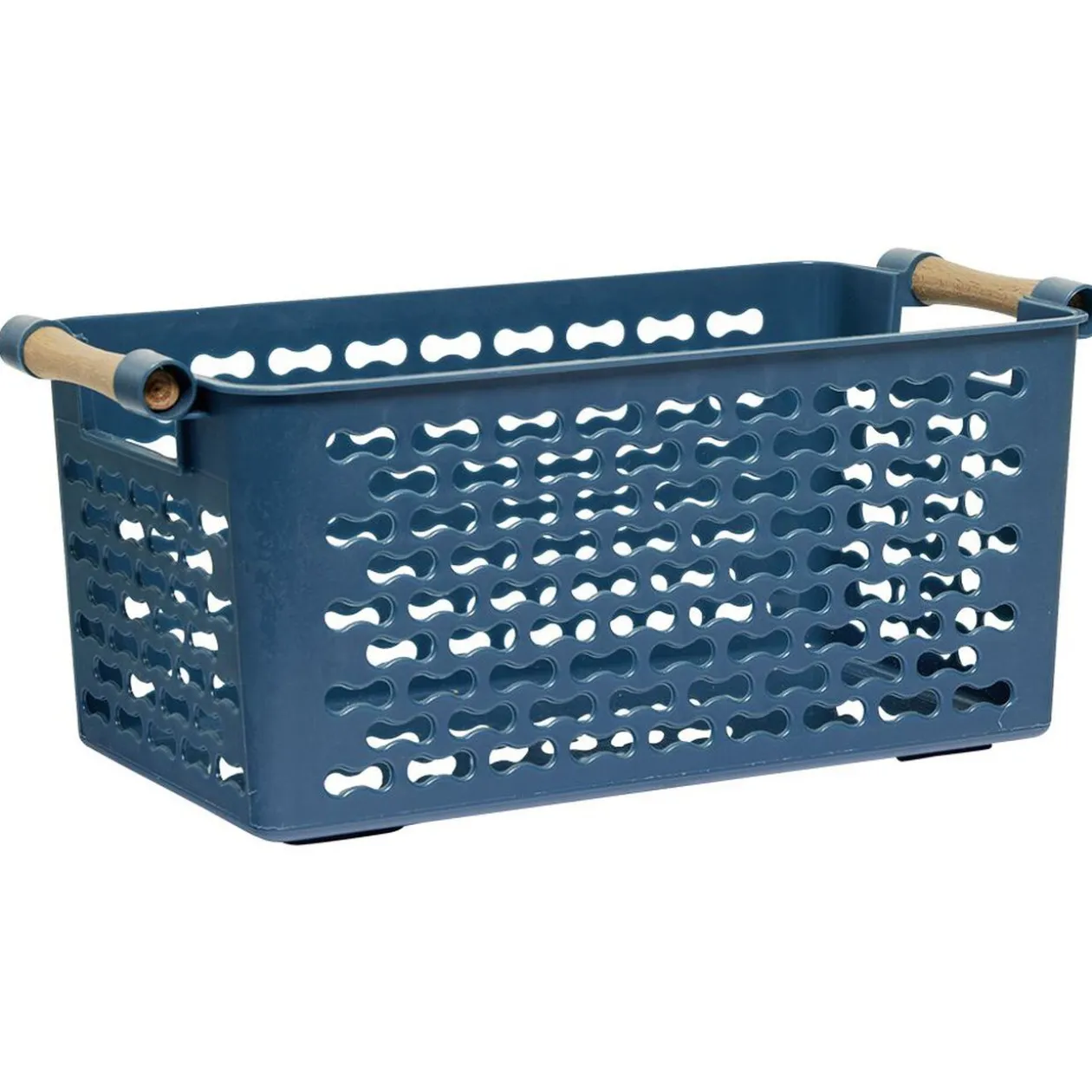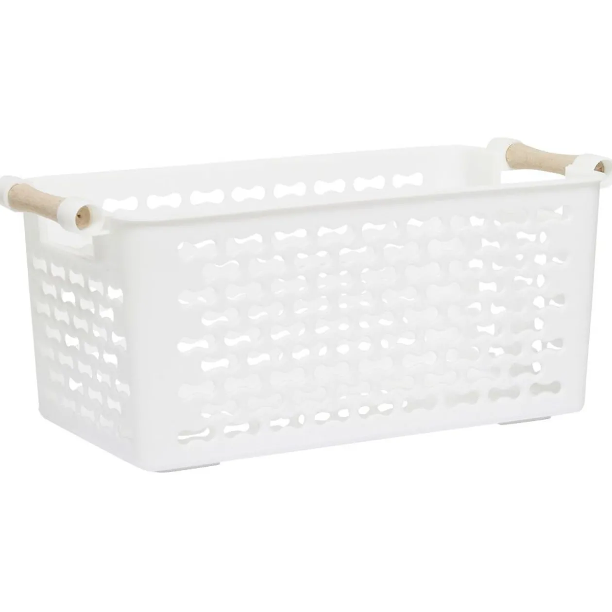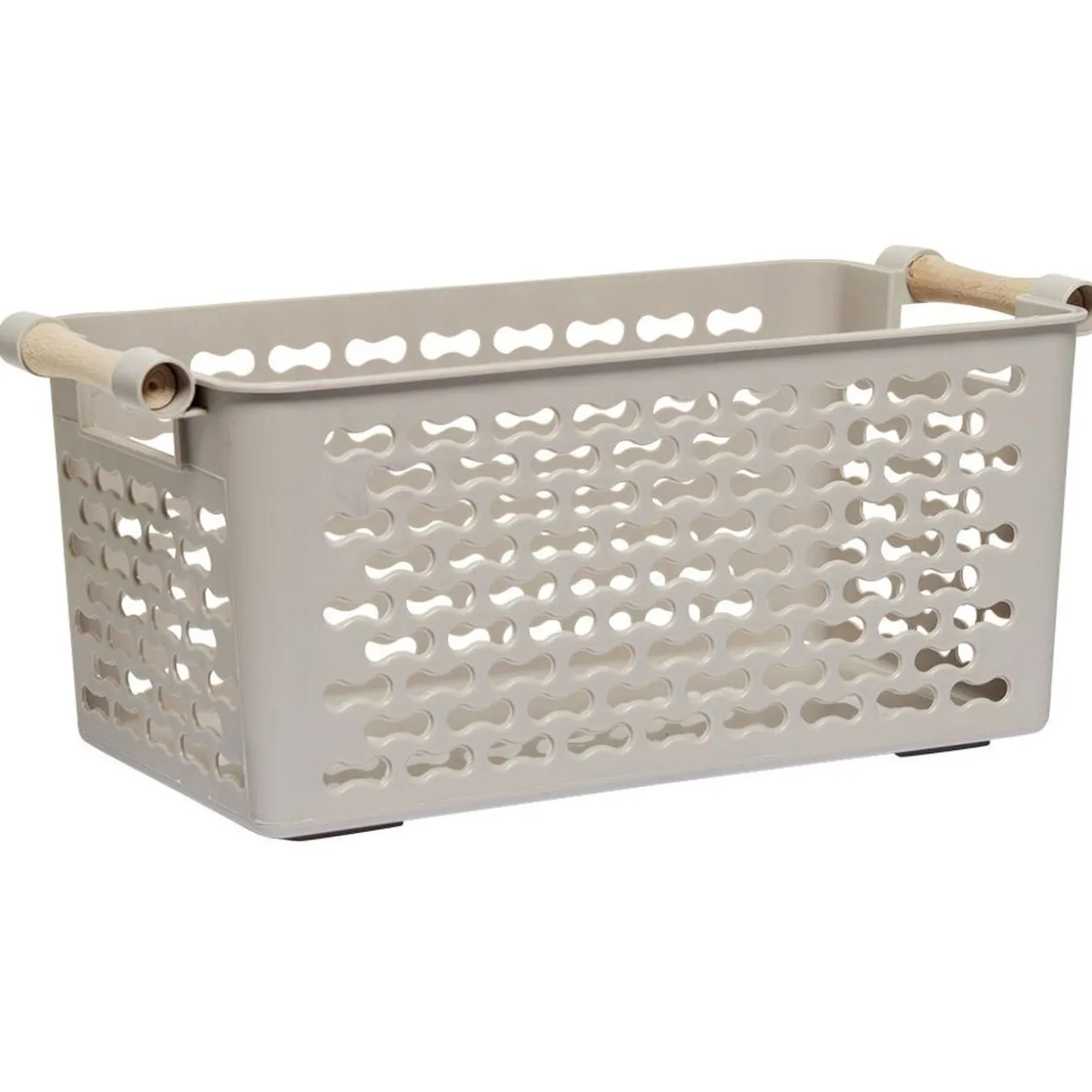 Panière en plastique avec 2 poignées en bois. Idéale pour le linge.