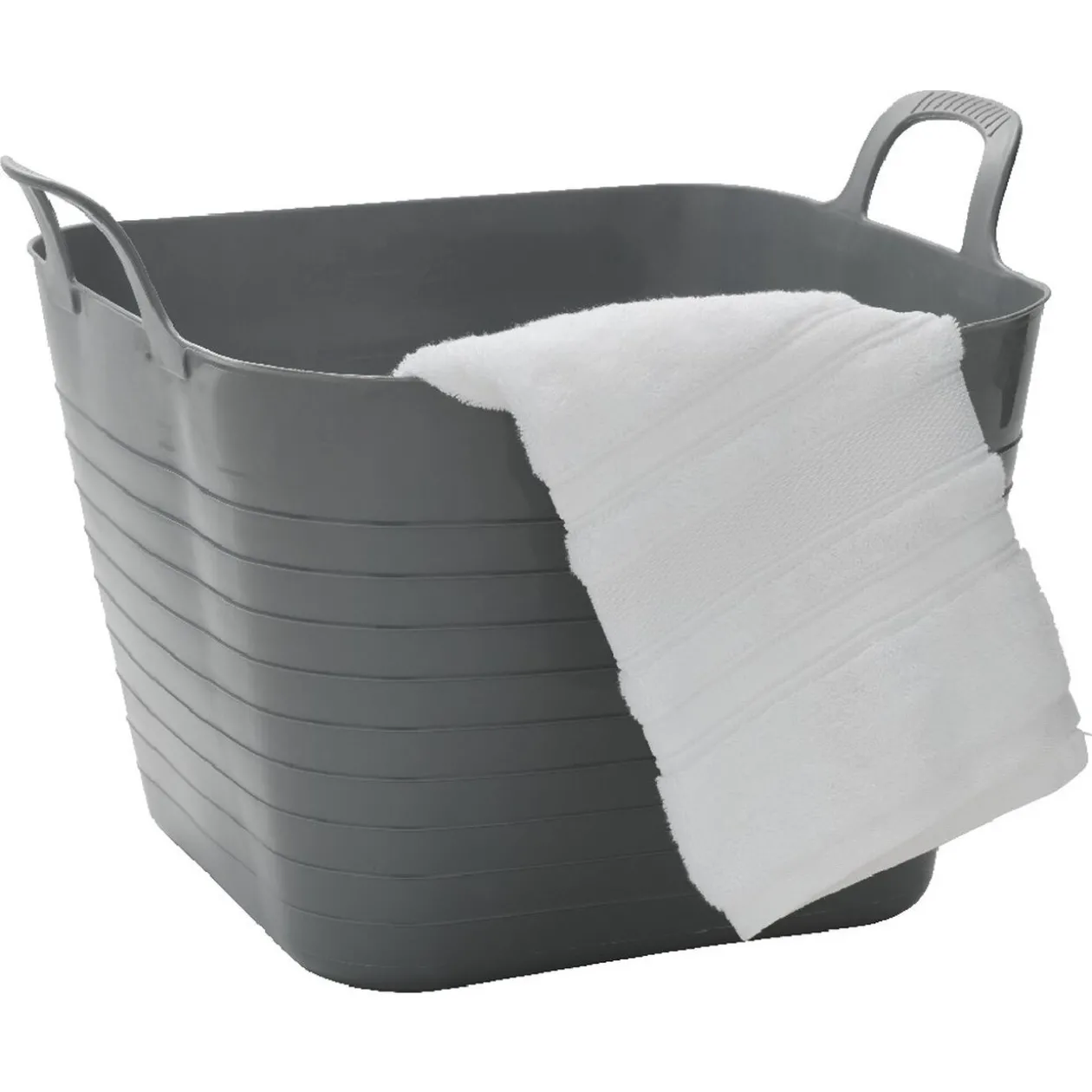 Moins encombrant et plus pratique pour transporter des affaires, cette panière grise est très souple et vous la déplacerez facilement grâce à ses poignées. Pour la ranger, écrasez-la simplement afin d’économiser la place.