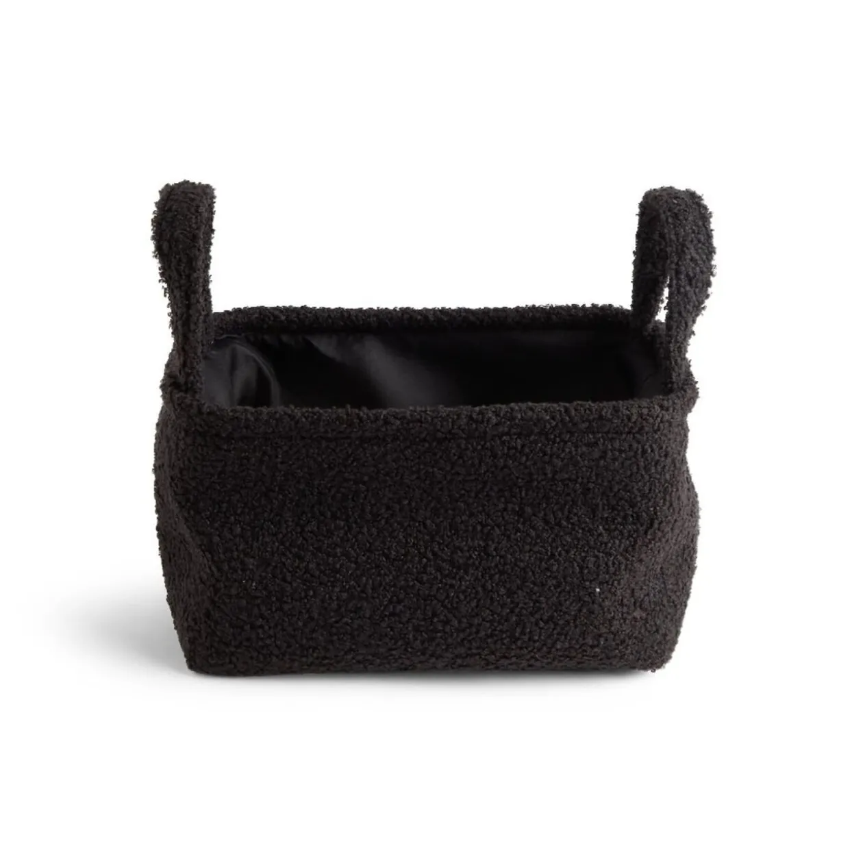 Ajoutez une touche sophistiquée à votre décoration avec cette panière en laine bouclée noire.