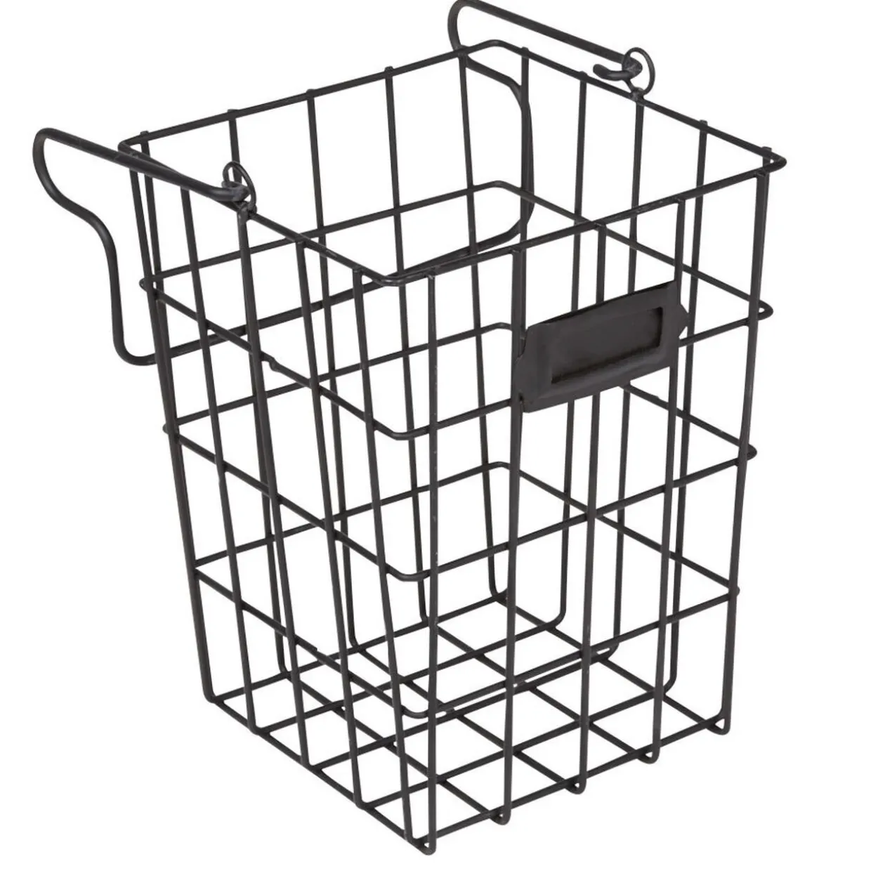 Panière noire en métal, dim. 16,8×19,5×20,5 cm.