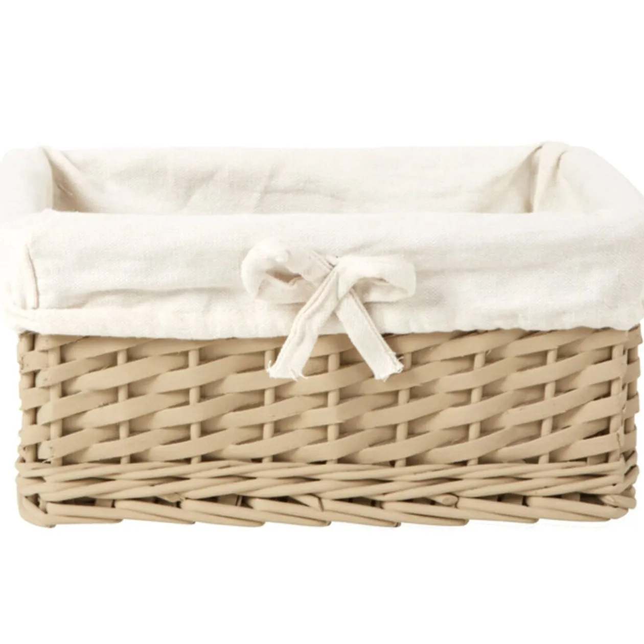 Panière osier couleur crème, dim. 28x19xh.13 cm, intérieur tissu.