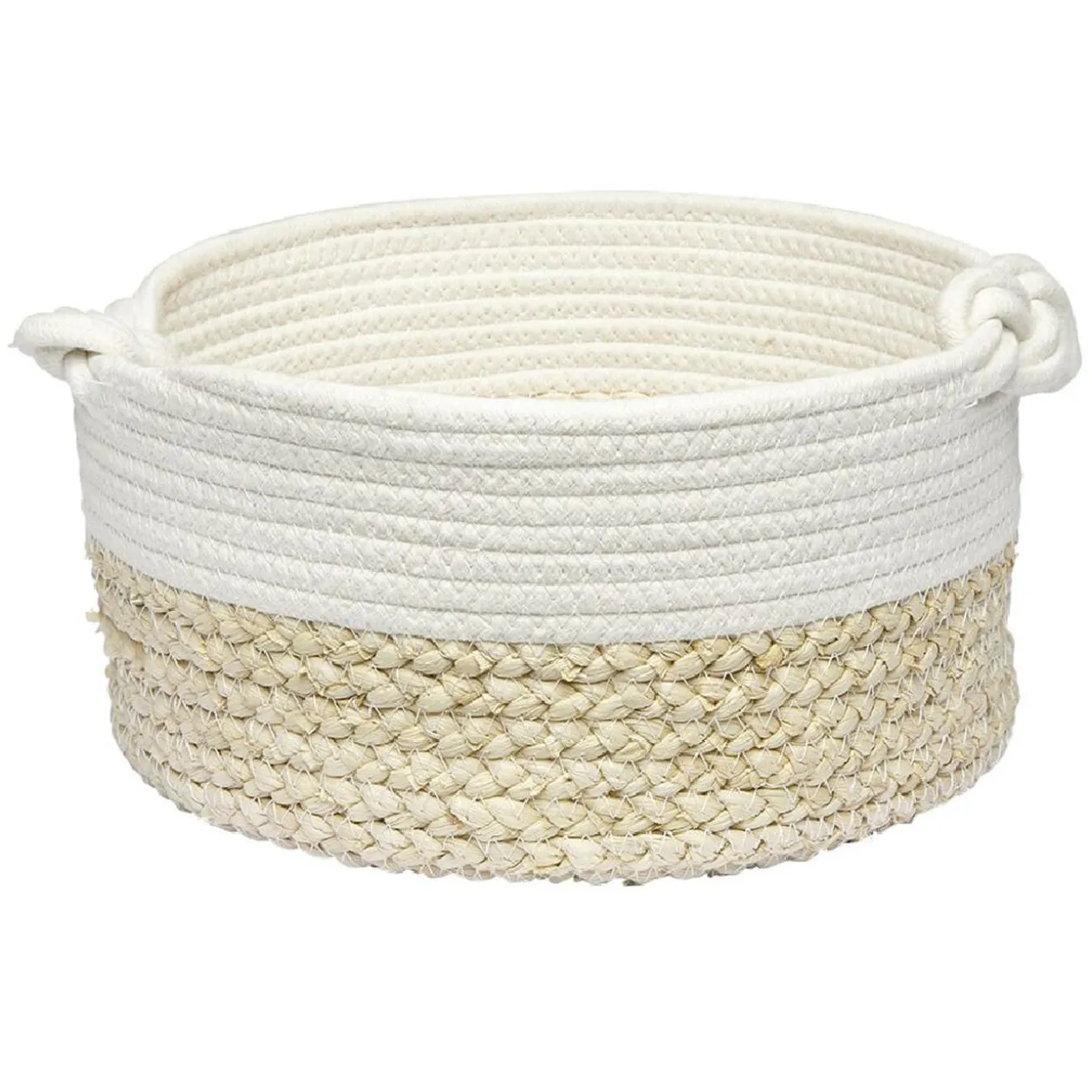 Panière ovale bicolore blanche et naturelle pour organiser et transporter facilement vos affaires.