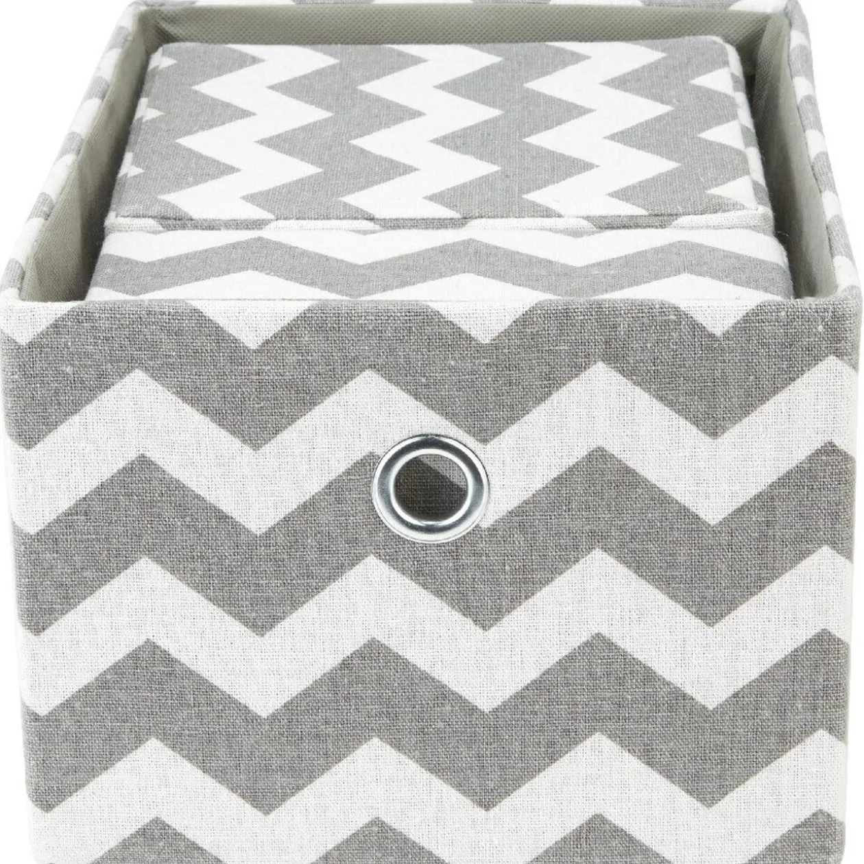 Set de 3 panières rectangulaires en polyester imprimé zig zag gris et blanc. Déco et pratique, idéal pour organiser votre intérieur avec style.