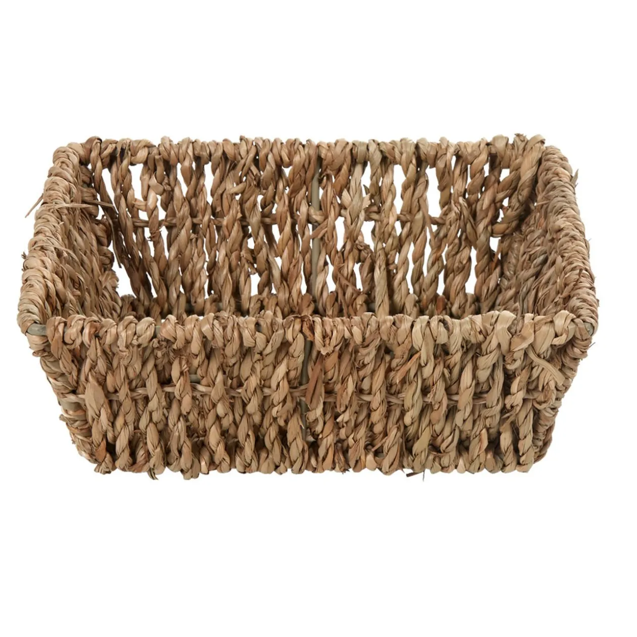Cette panière rectangulaire en jonc de mer tressé sera parfaite pour le rangement de vos produits et accessoires dans la salle de bain ou toute autre pièce de la maison.