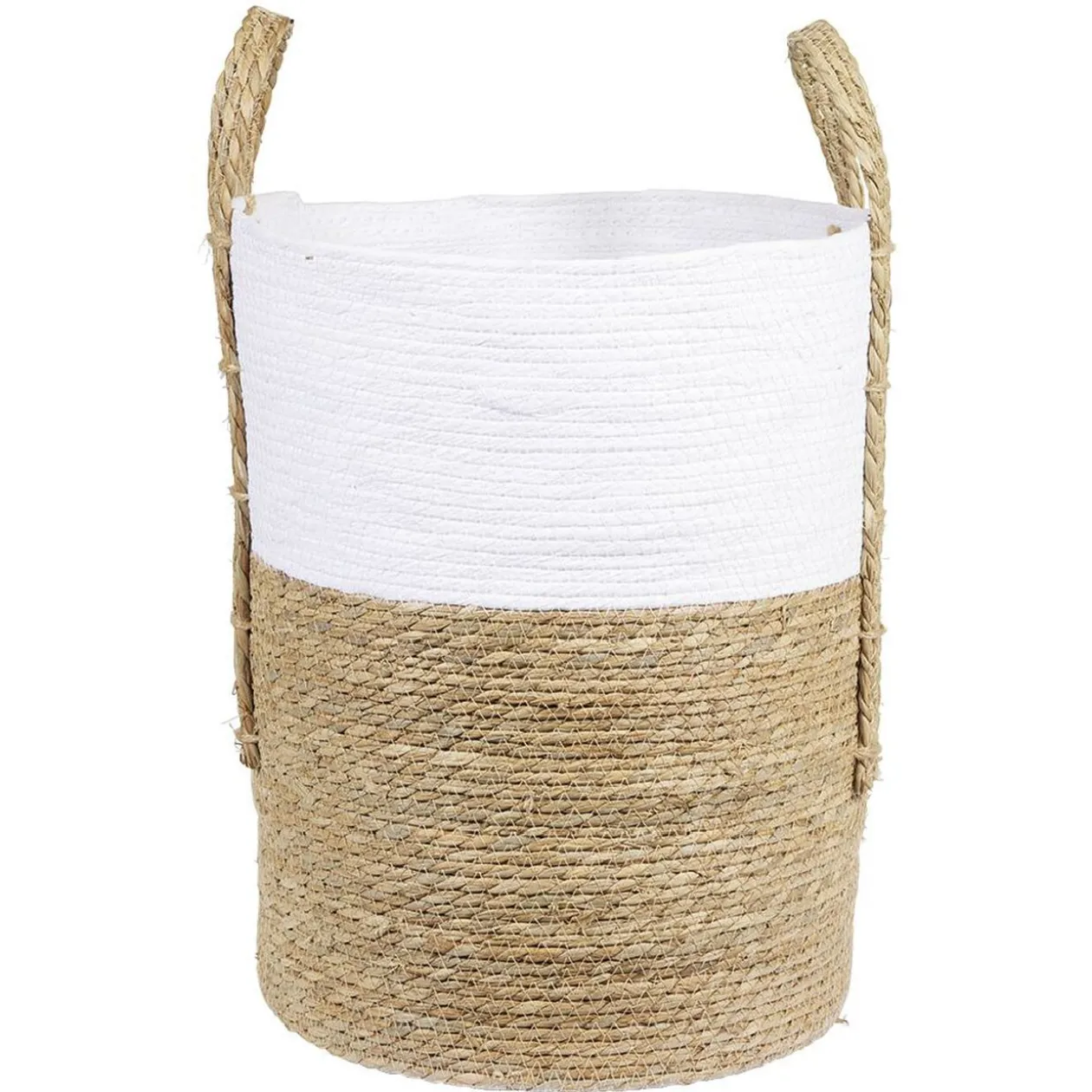 Panière ronde bicolore blanche et marron. Idéale pour donner un style naturel à votre rangement.