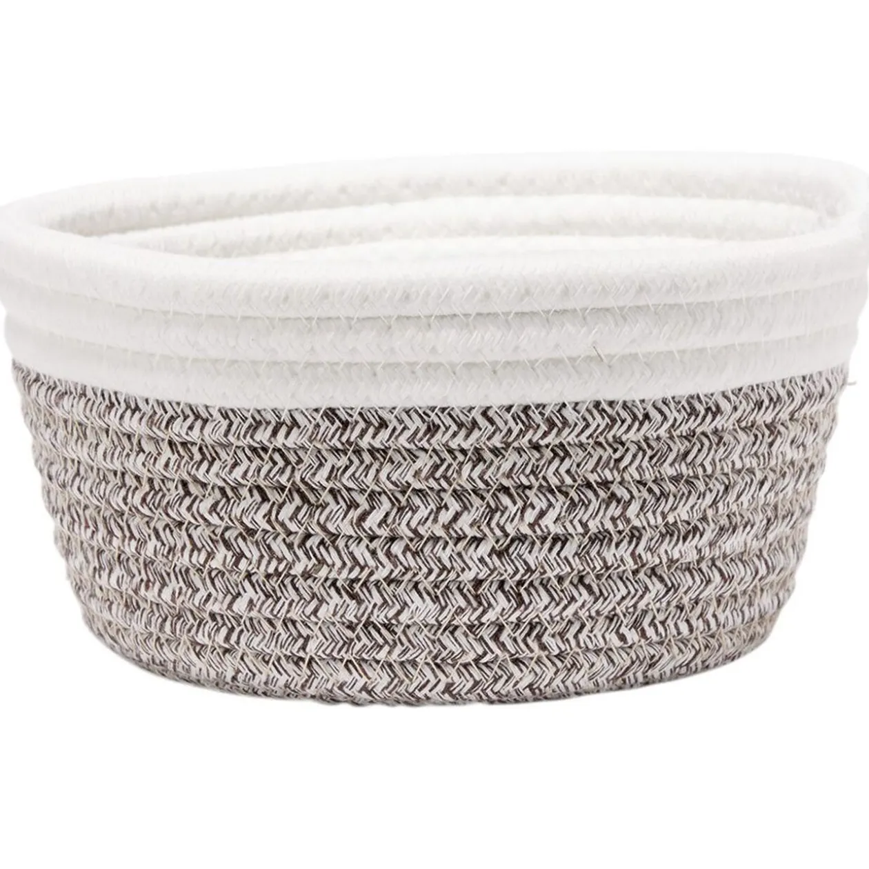 Panière ronde en coton tressé, décorative et pratique pour le rangement de vos accessoires du quotidien.