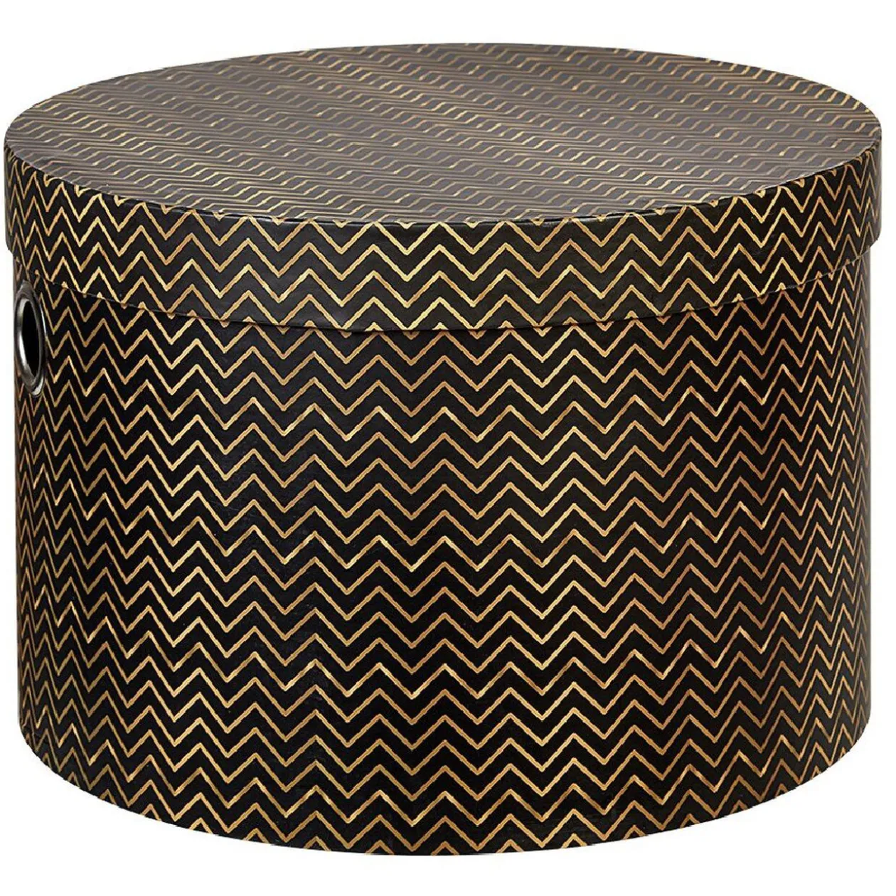 Lot de 3 panières rondes en polyester avec couvercle de couleur marron au motif zig-zag doré.