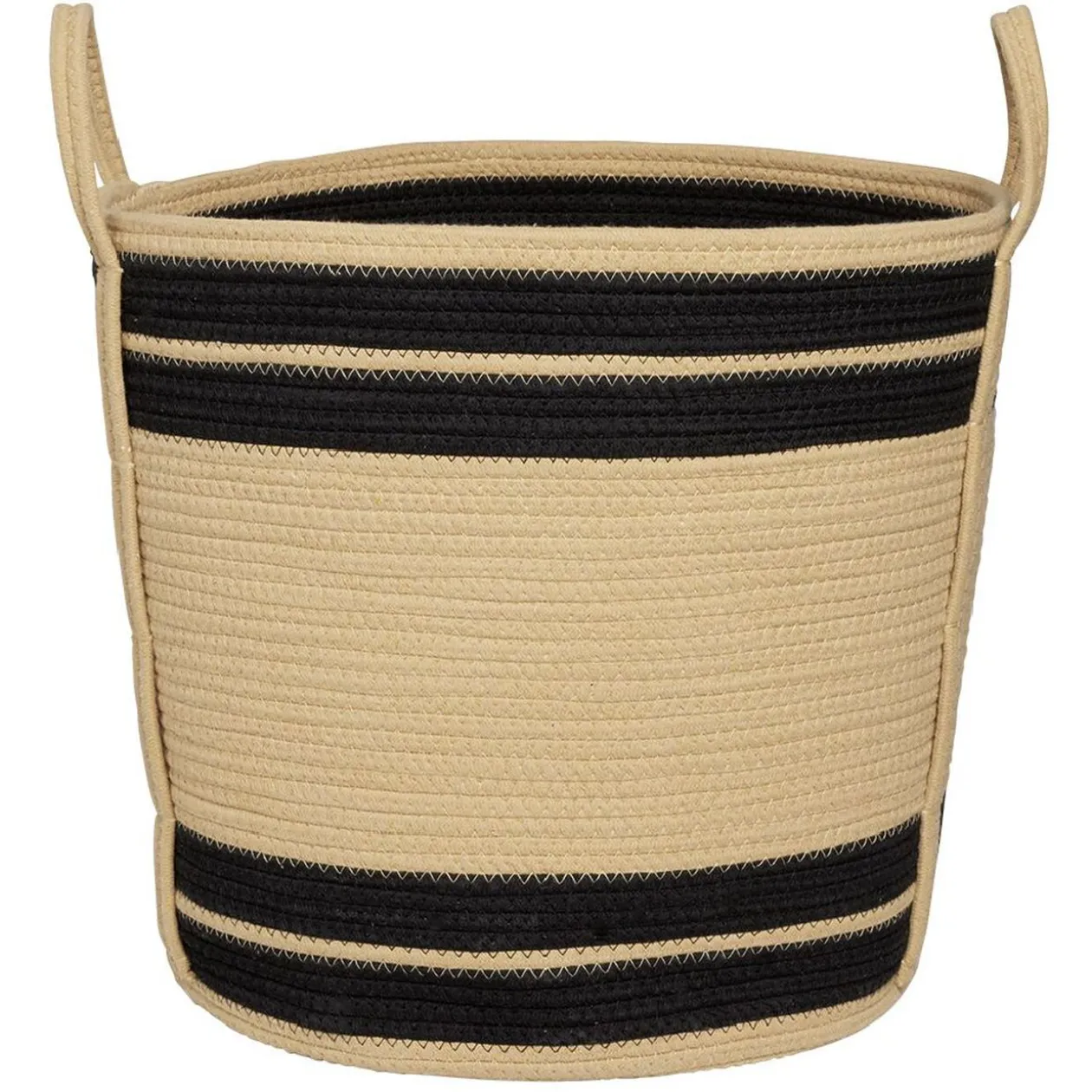 Cette panière ronde tressée naturelle avec bandes noires confèrera à votre intérieur un style chaleureux et cosy.