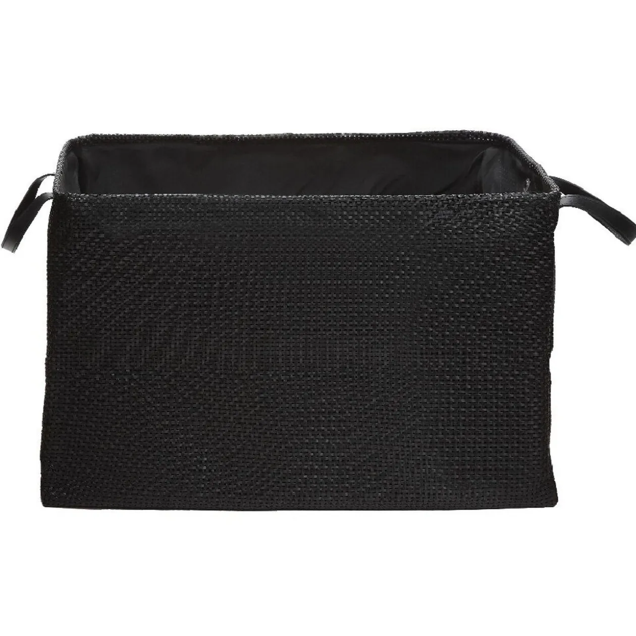 Panière textilène pliable avec anses simili cuir noir L45 cm