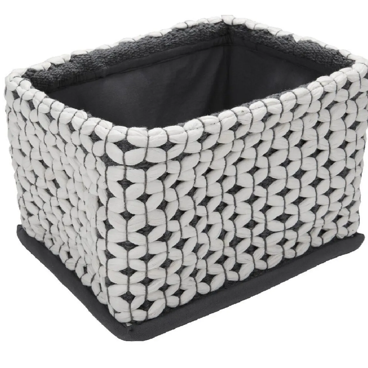 Misez sur cette panière en tissu crocheté bicolore blanc/gris ou blanc/rouge brique pour aménager et décorer votre intérieur.