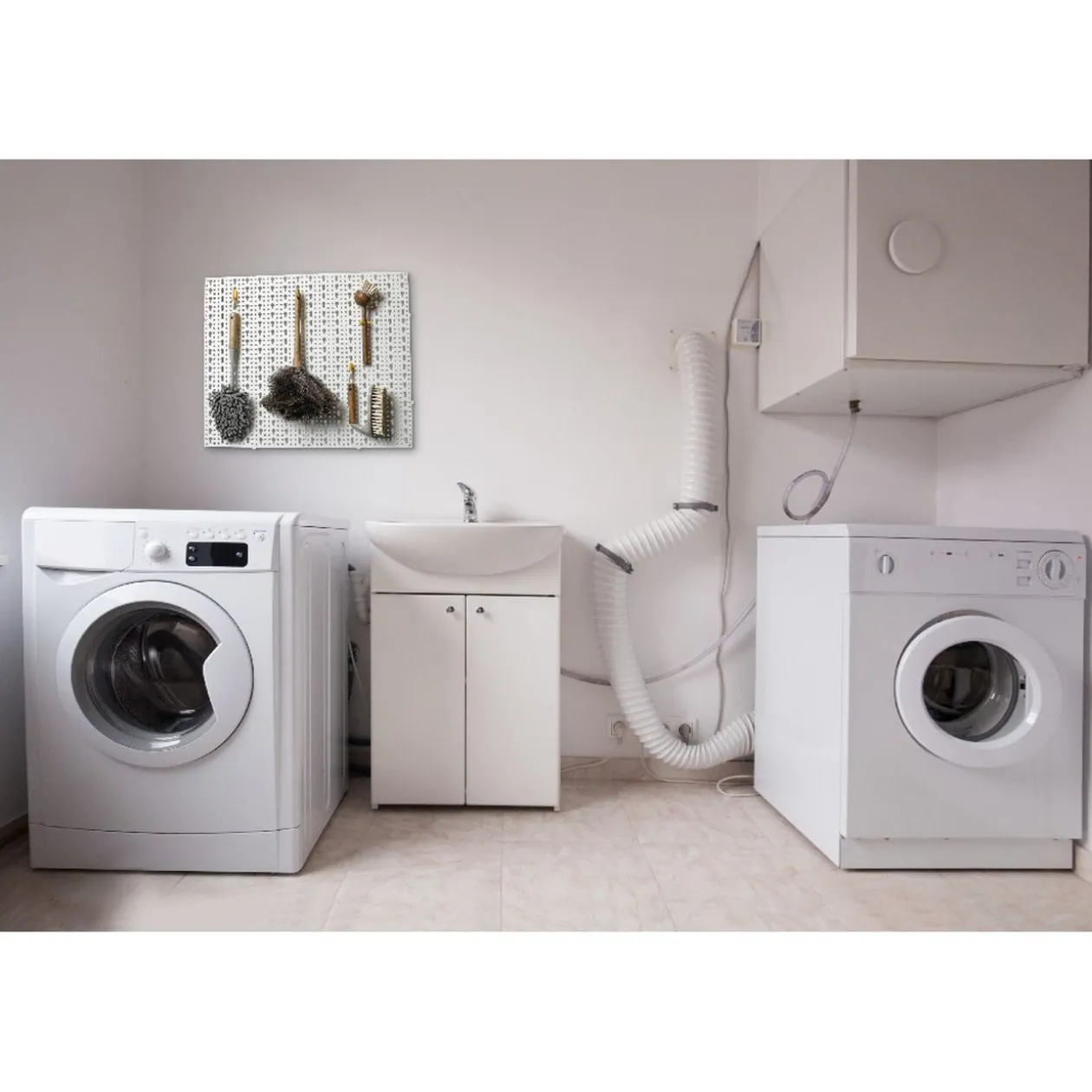 Gagnez de l’espace de rangement avec ce panneau mural perforé, facile à installer grâce à son kit de fixation inclus. Les 22 crochets assortis, clipsables à l’infini vous permettront de suspendre n’importe quelle fourniture. Accrochez-y les outils, les ustensiles de cuisine ou encore les accessoires de coiffure.